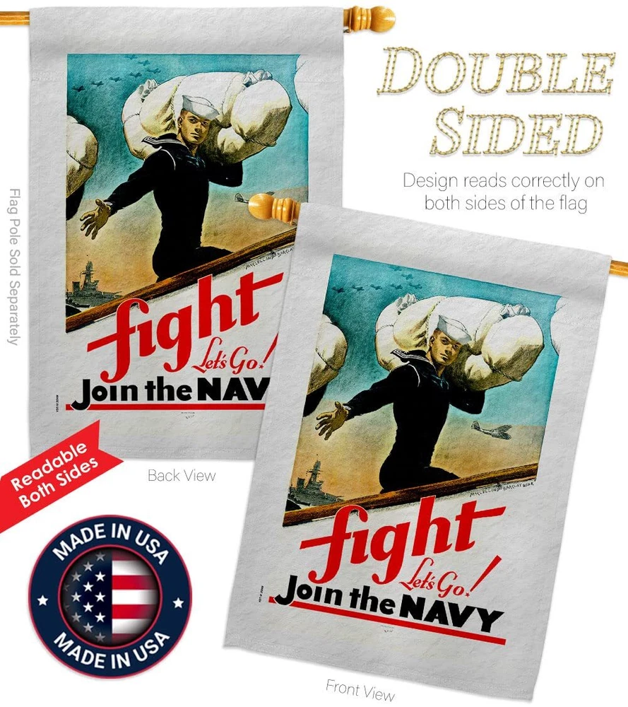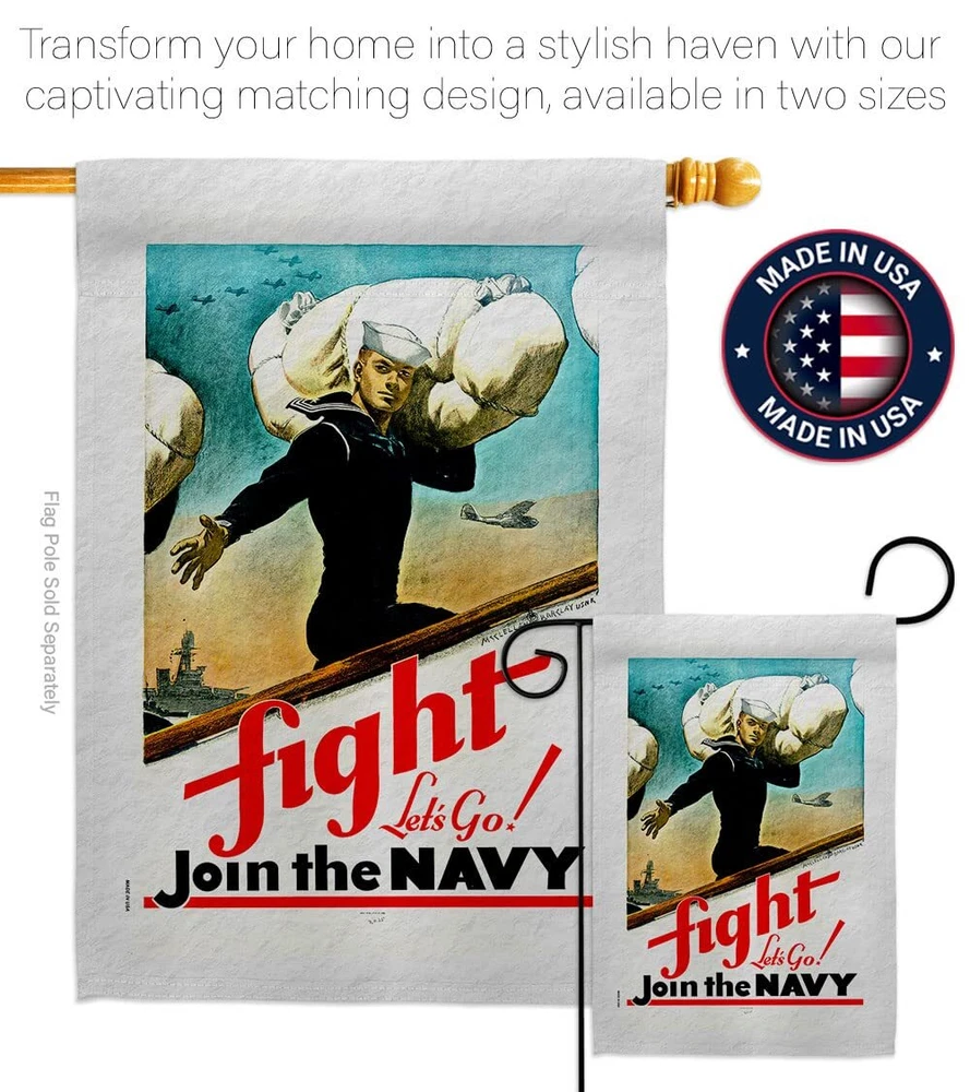 Fight Lets Go House Flag Pack Armed Forces Navy USN Seabee United State Ameri...