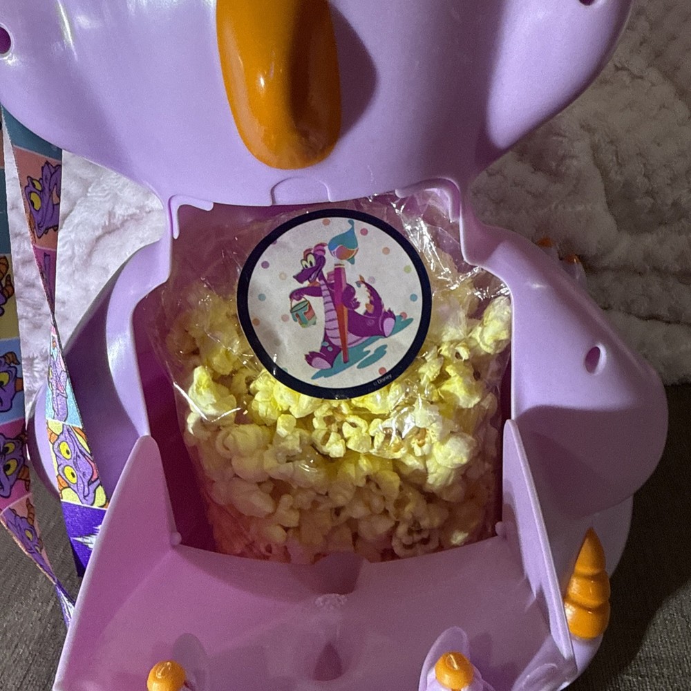 The product is an exclusive Figment popcorn bucket released at the Disney Parks Festival Of The Arts 2022. This limited edition collectible features the beloved Disney character Figment and is a must-have for fans of Walt Disney World. Being sold out, it holds a special significance and nostalgia for those who were lucky enough to acquire it. Perfect for adding to a Disney memorabilia collection, this popcorn bucket captures the magic and whimsy of the Festival Of The Arts event. Original popcorn is included if the buyer would like it.
