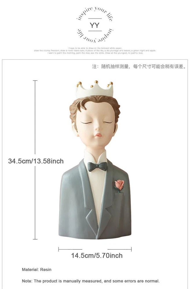 Free and fast shipping , shipping take up 1-7 Business Days 30 Day Return Accepted EASY PAYMENT via PayPal, Credit Card, PayPal Credit, Google Pay... Figurine Man Wedding Resin Multicolor Modern Carved Large Free Stand Home Decor We support , contact us and we will provide your best service. If you are , we will give you discounts Product parameters: Material:Resin Size: as shown below A:17.5*10.5*35.5/6.88*4.13*13.97inch B:14.5*13*34.5/5.70*5.11*13.58inch C:17.5*10.5*35.5/6.88*4.13*13.97inch D:14.5*13*34.5/5.70*5.11*13.58inch Products include: 1PCS If you have any questions, you can contact customer service. Note 1:1 inch = 2.54 , 1 = 0.39 inches Note 2: Colors may vary slightly due to computer monitor settings. Note 3: Due to the different measurement methods, please allow a dimensional deviation of 1-3 . Note 4: The product delivery is less than $5, and the tracking information cannot be queried, but it does not affect the arrival of your goods. REVIEWS The product came very well packaged. I'm very happy. thank you for everything. Seller strongly recommended. This is great! I definitely recommend! Product looks amazing Delivery was fast. Excellent seller, great communication. I advise everyone to buy it!