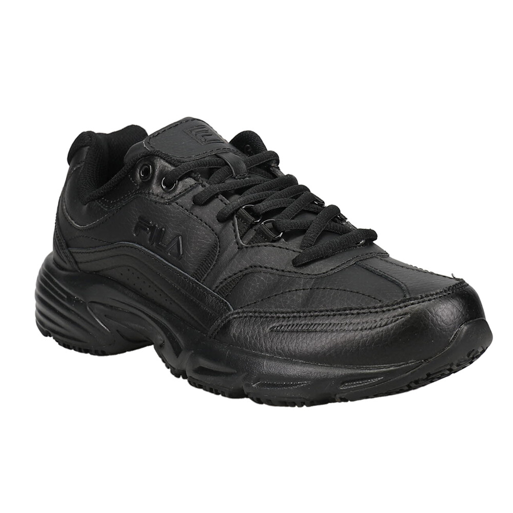Memory Workshift Slip Resistant Soft Toe Work Shoes Product Details Leather upper Lace up closure EVA midsole for cushioning Rubber slip resistant outsole ASTM F2913 11 determines the dynamic COF between footwear and floor contaminants under reproducible laboratory conditions. Feel comfortable without sacrificing performance and protection in your work day with the Fila Memory Workshift slip resistant safety shoe. Where premium meets utility, the Memory Workshift is constructed from durable leather and synthetic overlays to give you a dependable work shoe that meets your occupational needs. The Fila Memory Workshift shoe features a rubber slip resistant outsole to provide traction against slick or wet surfaces. Tested in accordance with the applicable industry standards, including: ASTM F2913 11. Though designed to help prevent slips, you should always exercise caution on slick surfaces. Additional Details Color: Black Occasion: Work/Duty Gender: Mens Age: Adult Brand: Fila