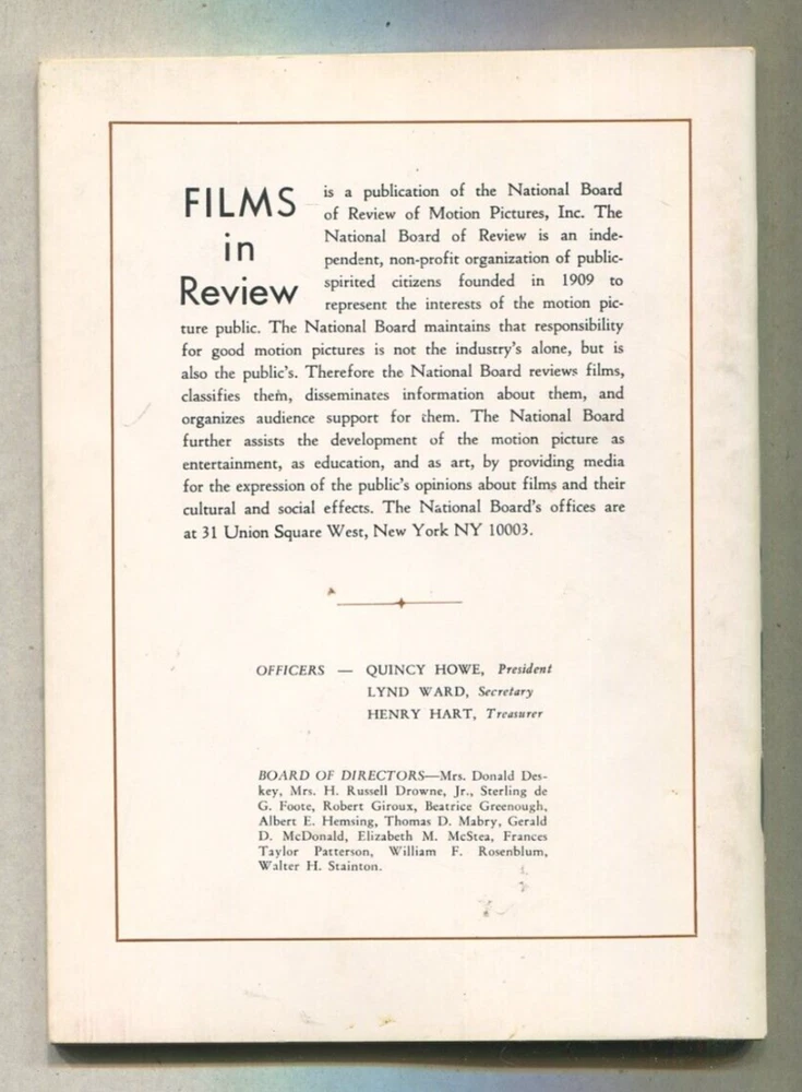 Language:EnglishPublication Month:JunePublication Name:Films In Reviewgtin13:Does not applyCountry/Region of Manufacture:United StatesUPC:Does not applySeller Notes:“very good”Publication Year:1968Topic:Celebrity