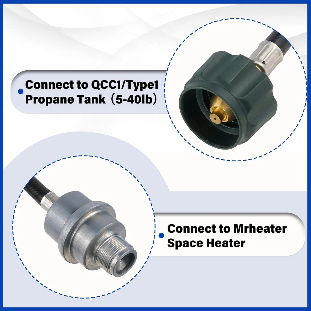 More Convenient: The Universal Fuel Filter with Hose is for the Portable, Big, and Tough Buddy Heaters in use with a bulk propane cylinder. No need for additional propane adapter hose. Convenient and save your money. For Use With: Fuel Filter F273699 Filtering Propane Servicing a Source, For Mr heater Buddy and Big Buddy 6351206, 6351207, 6351200, F273701, F273702, F232000, F274800, F23203 6FT Propane Adapter Hose:The hose with a QCC1/Type1 adapter, can connect directly to 20-45 lb propane tanks and ensure air tightness. and ensure air tightness. Allows you to use portable heaters more conveniently, quickly and safely. Professional Quality: Our products use high-quality raw materials. the filter is made of high quality steel. The tube adopts a three-layer structure, the outer layer is rubber, the galvanized steel support, and the inner layer is PVC. The joint is made of Solid brass. The product has passed the CSA professional certification, which is safe and durable. 1 Year : We provide 100% Satisfaction . If you have any problem after receiving this item, please don't hesitate to us, we resolve all issues in 24 hours.