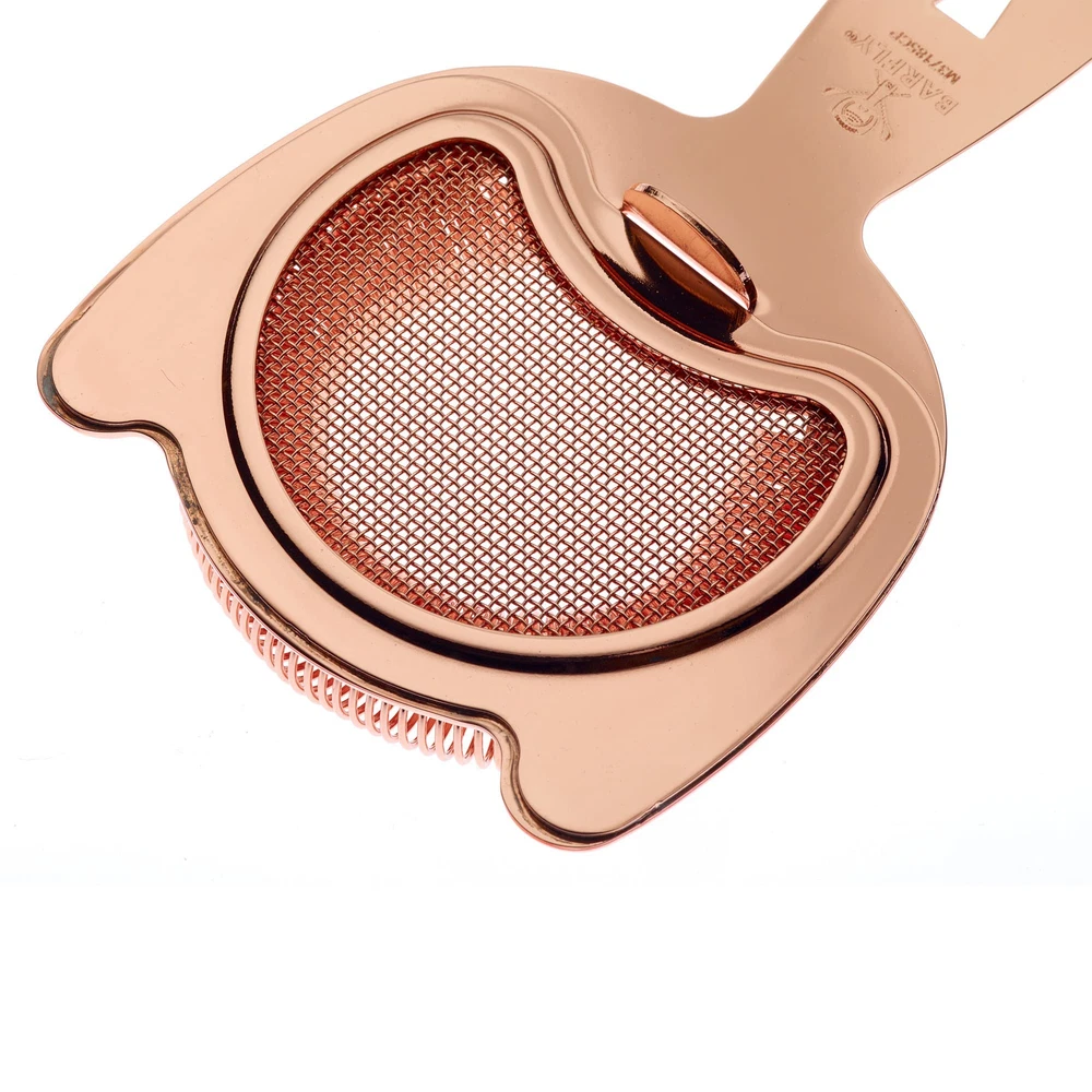 Fine Mesh Spring Strainer, Copper Plated QUALITY CONSTRUCTION: Crafted with heavy gauge stainless steel for superior durability, to help resist pitting and hide wear BARWARE ESSENTIAL: This fine mesh strainer easily filters out ice, fruit, and herbs, and integral prongs add stability and hold to create the perfect pour INCLUDES: Copper plated 6" 2-prong fine mesh strainer, made to effortlessly fit most shakers and mixing glasses EASY TO CLEAN: To maximize the performance and longevity of your products, hand washing with mild soap and warm water is recommended. Avoid detergents containing bleach or heavy chlorination MIXOLOGY GEAR: Fine barware for the professional bartender or the at-home enthusiast; has all the tools needed to help craft the perfect cocktail