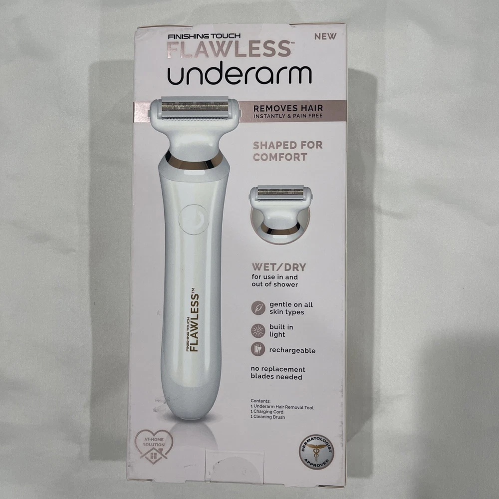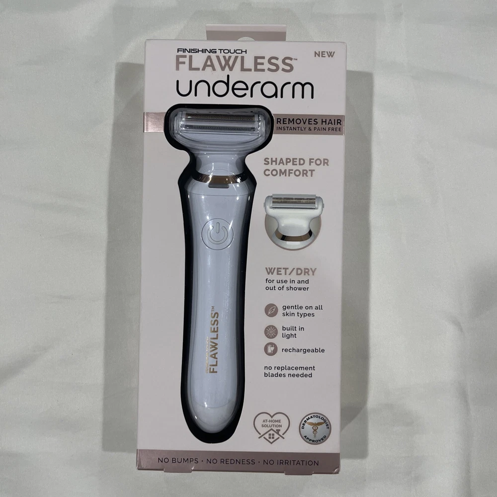 Achieve silky smooth skin with the Finishing Touch Flawless Underarm Hair Removal Electric Razor Device. Designed specifically for women, this compact and cordless tool is perfect for removing hair from your legs, arms, and bikini area. The device features two settings to cater to your comfort and a 4 cm² head size for precise hair elimination. The Finishing Touch Flawless razor is powered by batteries, ensuring that you can use it anywhere, anytime. The product line is known for its ability to deliver flawless results without causing irritation. Please note that battery life varies per person with each use. Embrace the ease of hair-free skin with this reliable and easy-to-use hair removal solution.