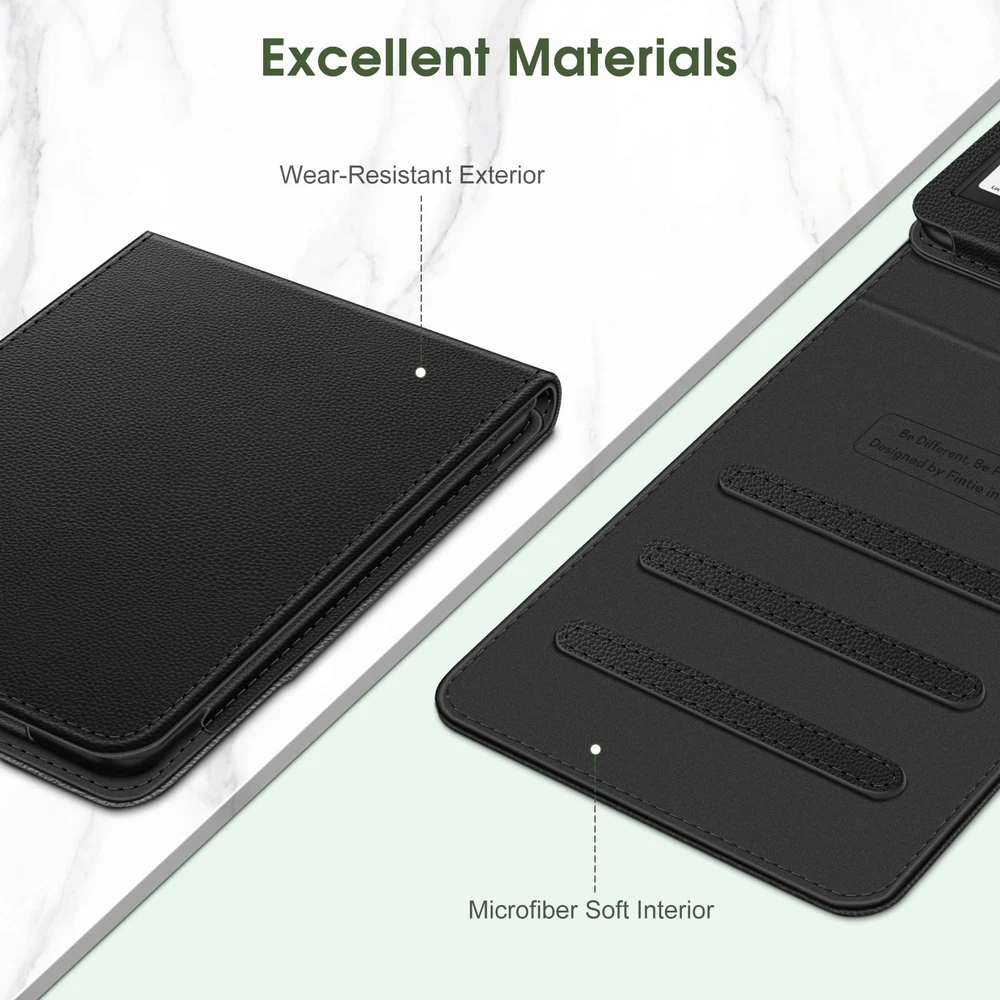 This Fintie Flip Case is a perfect match for my Kindle Paperwhite! The snug fit feels premium, and the auto wake/sleep works flawlessly. Love the adjustable stand feature—it holds my Kindle securely at different angles for comfy reading. The material is soft yet durable, and the anti-slip straps add extra stability. It’s lightweight but protective, making it ideal for travel. The precise cutouts give easy access to all buttons and ports. Definitely worth it for anyone wanting both style and functionality!