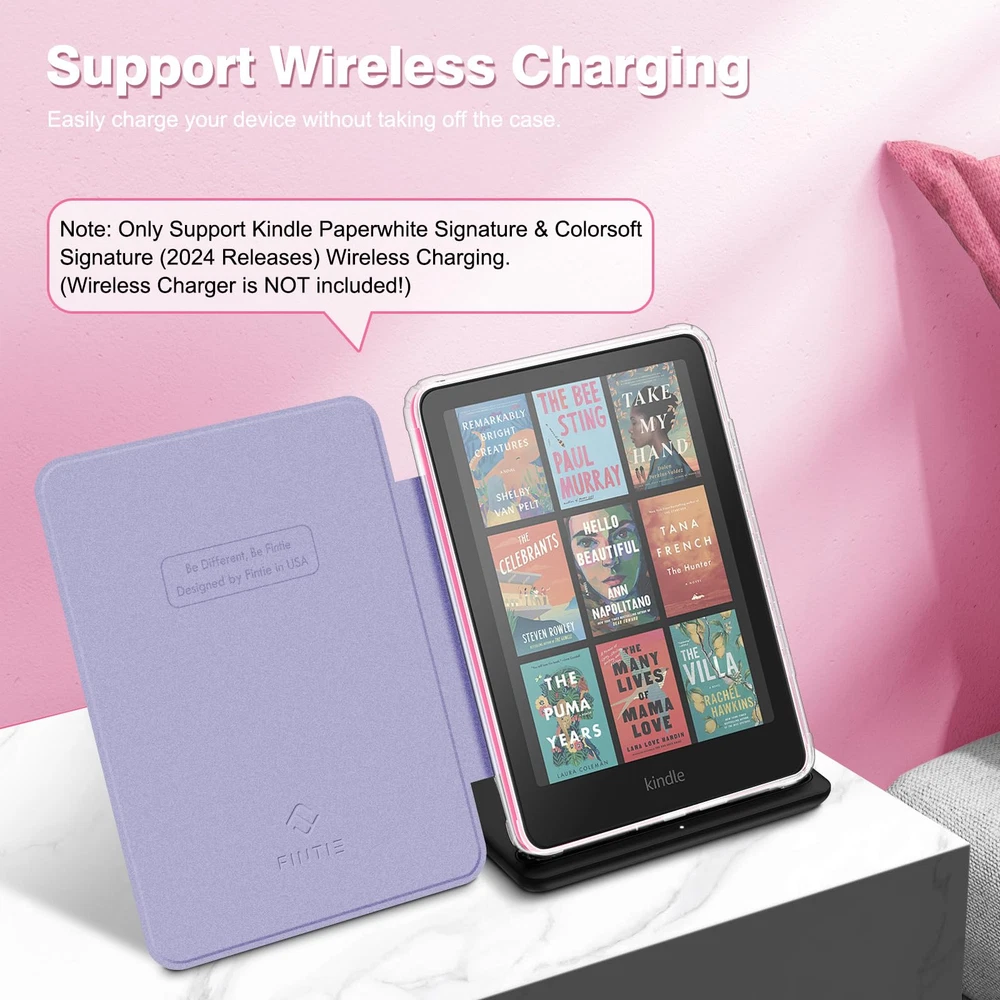 Compatibility: Designed exclusively for 7" all-new Kindle Paperwhite and Kindle Paperwhite Signature Edition (12th Generation, 2024 Release), and Kindle Colorsoft Signature Edition (1st Generation, 2024 Release). Fits 2024 Releases Only. Not fit prior generation Kindle devices. Slim and Lightweight: Super slim and ultra lightweight edition. Protect your 7" kindle paperwhite 2024 / kindle colorsoft signature edition eReader without adding unnecessary bulk or weight. Fully access to all features. Easy clip-on application. Clear Soft TPU Case: Ultra clear transparent design guards your precious 2024 kindle paperwhite 12th generation / kindle colorsoft signature edition tablet perfectly with a fashioned look. Meanwhile, the crystal-clear back is perfect for DIY by adding stickers you like. Auto Wake/Sleep: With built-in magnets, this cover automatically activates your 7 inches kindle paperwhite 2024 /kindle colorsoft signature edition tablet 2024 wake or sleep upon opening or closing, enhancing both convenience and energy efficiency. Shock Proof: Made of high quality wear-resistant PU leather exterior and durable TPU back case with raised edges and four reinforced corners, which provide excellent shock-absorbing to protect your 2024 kindle paperwhite 12th gen. /kindle colorsoft signature edition e-reader from scratches, bumps and drops.