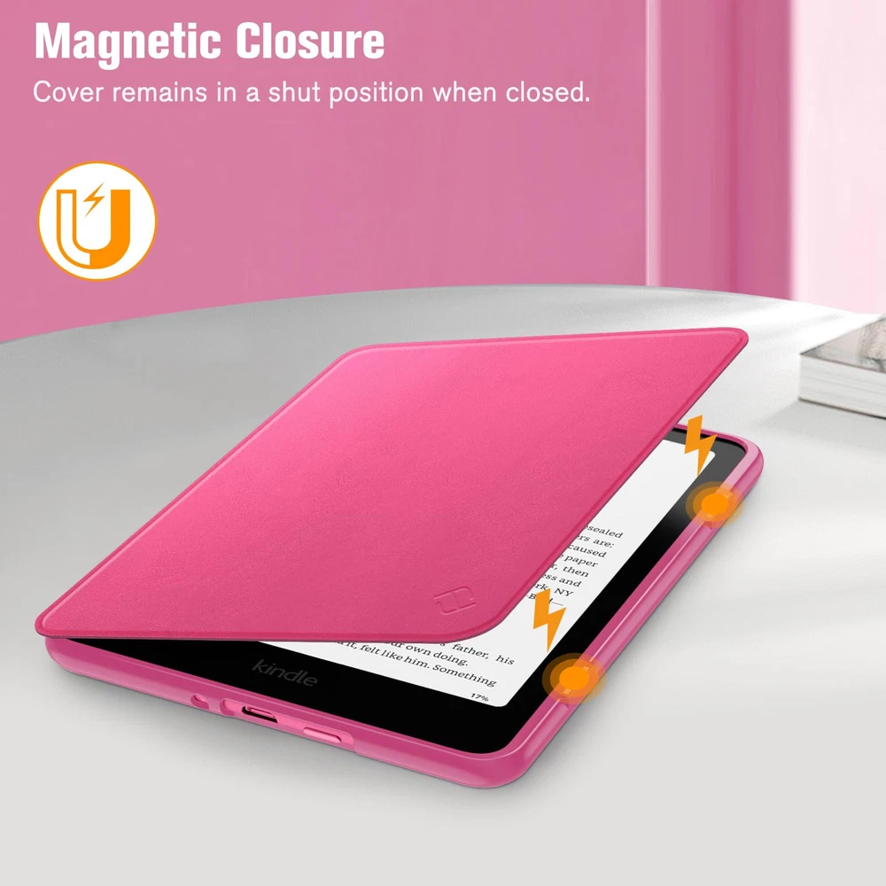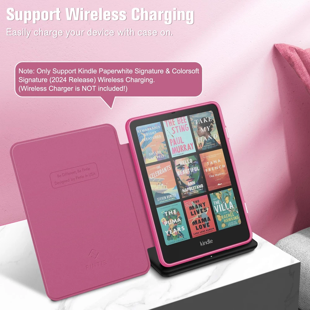 Compatibility: Designed exclusively for 7" all-new Kindle Paperwhite, Kindle Paperwhite Signature Edition & Kids Edition (12th Generation, 2024 Release), and Kindle Colorsoft Signature Edition (1st Generation, 2024 Release). Fits 2024 Releases Only. Hardshell back cover with flexible TPU bumper protects your 2024 kindle paperwhite 12th generation/kindle colorsoft eReader from shocks, drops and impacts. Soft microfiber interior front prevents your eReader from scratched. Automatically wake your 7 inch kindle paperwhite 12th generation / kindle colorsoft signature edition 2024 tablet or put it to sleep by simply opening or closing the case, saves power and extends your reading time. Easy clip-on application. Access to all features and controls. Supports 2024 kindle paperwhite signature and colorsoft signature edition wireless charging with case on. Magnetic clasp ensures cover is securely closed, secures your device without straps covering the front.