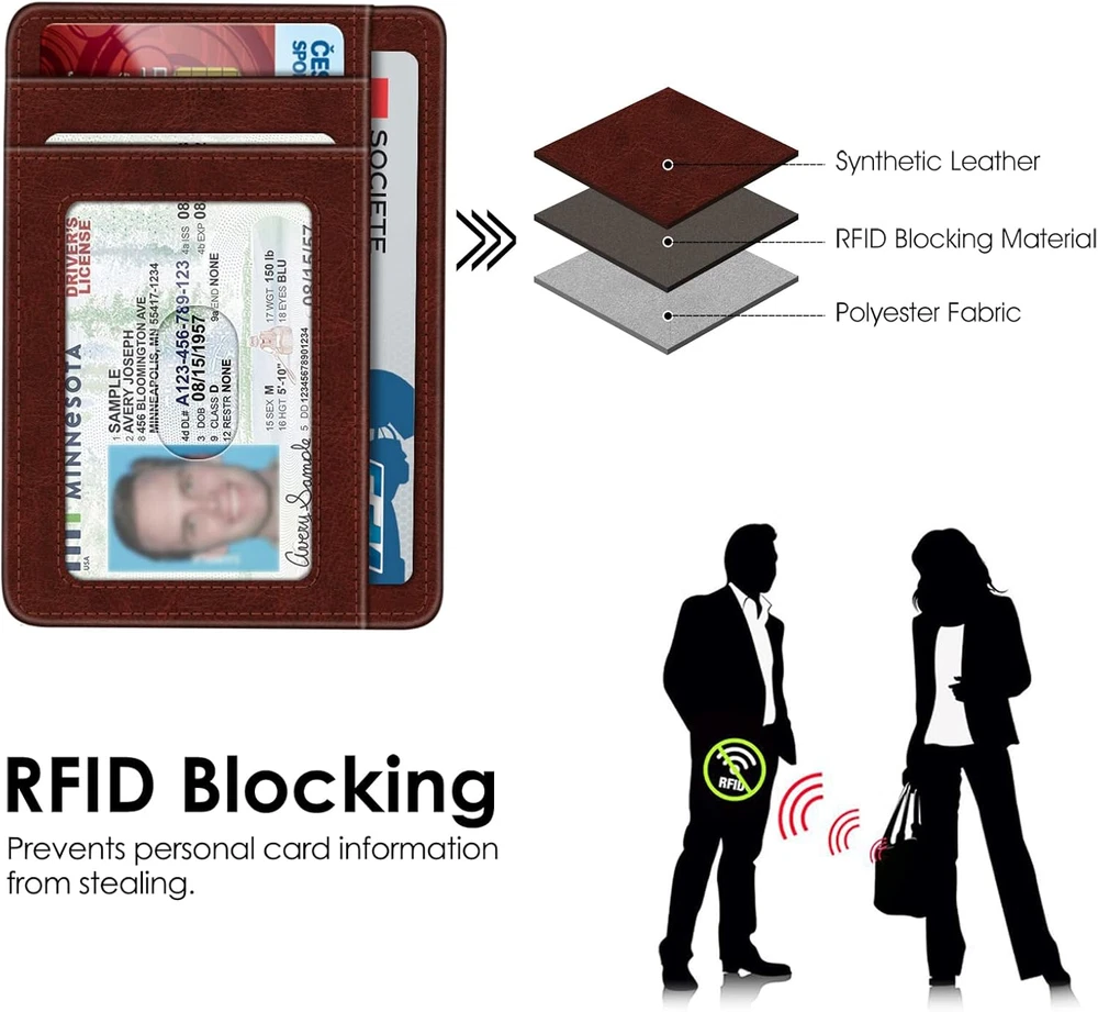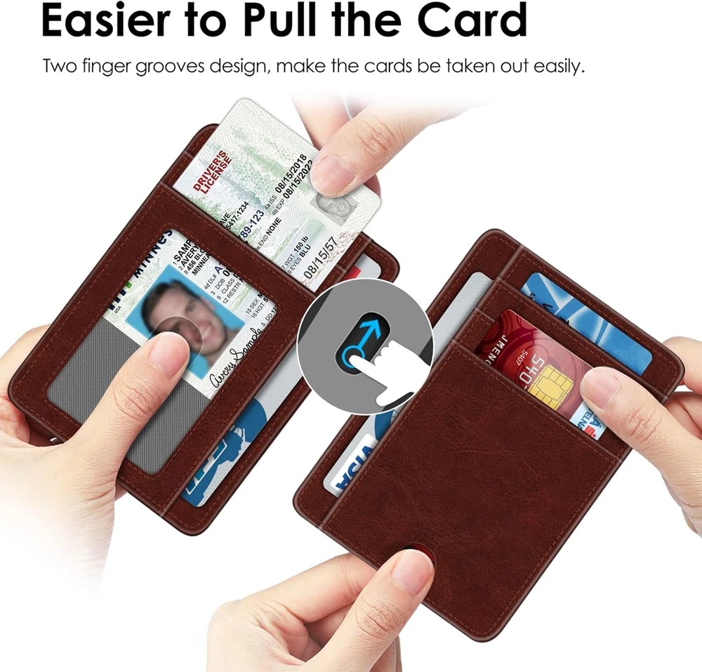 Store New Arrivals Add to Favorite View Feedback Contact Fintie Slim Minimalist Front Pocket Wallet, RFID Blocking Credit Card Holder Card Cases with ID Window for Men Women Description Item model number ACCF Style Business Color Light Brown Pattern Solid Product Dimensions 3.35 x 0.4 x 4.72 inches Material Polyurethane Country of Origin China Item Weight 1.13 ounces Department womens Brand Fintie Manufacturer Fintie Slim and Lightweight: Measuring 4.6" x 3.2" x 0.2", this wallet is compact and lightweight, fitting effortlessly into pockets, purses, or travel bags Large Capacity: Featuring 6 credit card slots, 1 transparent ID/driver's license window, and a dedicated money pocket, it offers generous room for organizing cash, cards, receipts, and more Easy Access: With two user-friendly openings, accessing your cards becomes a breeze, ensuring quick and efficient retrieval Security Features: Integrated RFID blocking technology safeguards your stored information from unauthorized scanning during travel or shopping activities Minimalist Design: The wallet boasts a sleek and minimalist design that combines functionality with style, making it a versatile accessory for everyday use This slim and lightweight wallet offers a perfect balance of compactness and functionality. With 6 credit card slots, a transparent ID/driver's license window, and a money pocket, it provides ample space for organizing essentials like cash, cards, and receipts. Its minimalist design not only exudes style but also emphasizes practicality, making it a good accessory for everyday use. Package Contents: 1 x Credit Card Holder ABOUT US We offer the best prices around on high quality products. Our E-store includes media such as books, movies, music and games while offering electronics, toys, sporting apparel, clothing, tools, general home, garden items and more. SHIPPING We are always working hard to ensure your package arrives as soon as possible. Please understand that some factors like weather, high postal traffic, and the performance of shipping companies are outside of our control. We offer free shipping to the lower 48 states and ship within 2 business days of payment, usually sooner. We do not accept P.O. Boxes. Please provide a physical address. For shipping outside of the continental USA, we only use eBay's Global Shipping Program.The item is shipped to KY and then sent to the rest of the world. International customers are responsible for all duties and taxes. Continue to check out in order to calculate costs for shipping the item to your country. Messages regarding eBay's Global Shipping Program MUST be directed at eBay EXCLUSIVELY. RETURNS We offer a 30-Day Return Policy on items which you are not completely satisfied with. You have the option for a full-refund or an exchange of the item. No returns are available on items shipped outside of the USA. PAYMENT We accept PayPal. CONTACT US This page content is yet to come Please ad us to your favorite seller and visit again later Thank You CUSTOMER SATISFACTION We try our very best to make sure every customer is completely satisfied. If there's a problem, message us! We're happy to help. WE ACCEPT