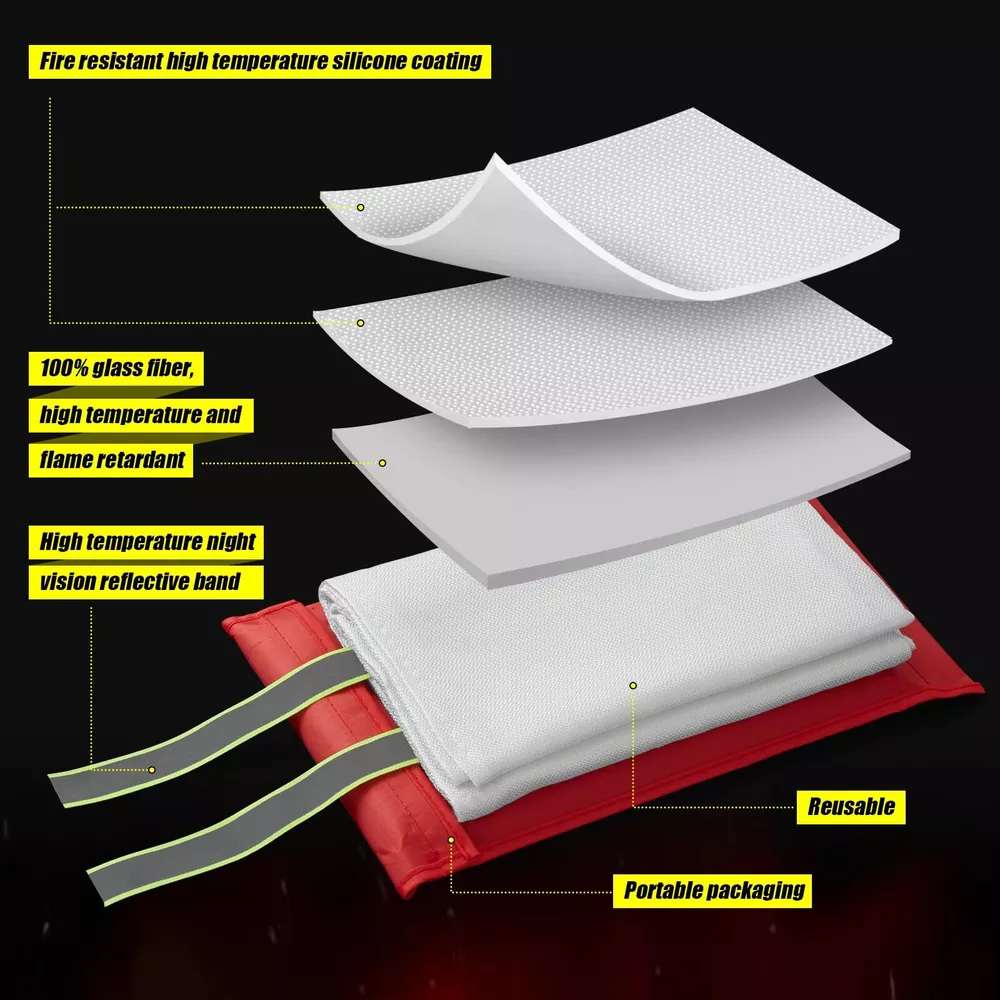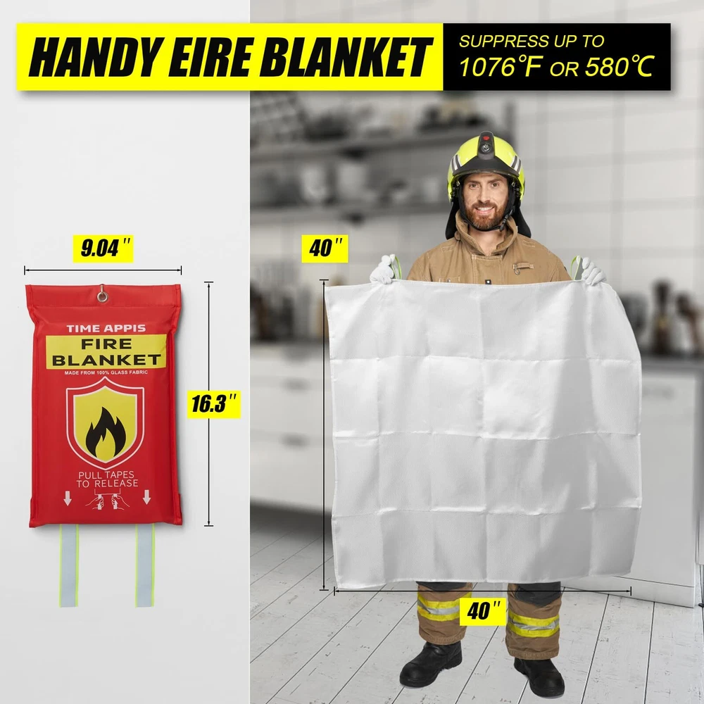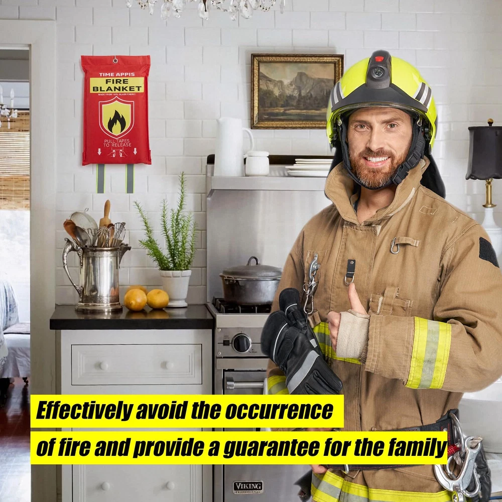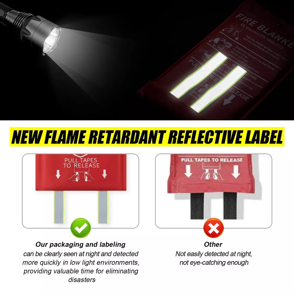 Safety & protection fire blanket: Put out small fires quickly and easily without making a mess (unlike regular fire extinguishers). Simply pull down the tab to unfold the blanket. Place these fire blankets in your home kitchen, backyard, fireplace, grill, office, campground, or as part of your vehicle's survival kit for total protection. High quality materials and heat resistance: Made of 100% flame retardant fiberglass fabric, this design complies with CE safety standards (EN 1869:2019). Effective air barrier isolates heat sources such as grease fires or liquids or different types of fires, withstands temperatures up to 1076°F (580°C). Easier to find: Our packaging is designed in multiple eye-catching colors with reflective labels that can be found quickly in an , buying us time to get to safety! Convenient storage, will not expire: Unlike ordinary fire extinguishers, this fire retardant blanket is easy to carry and , quickly and easily extinguish small fires without causing any mess in your kitchen or home. Never expires and does not need to be replaced. Easy to use:Pull tabs down, unfold blanket, cover slowly, turn off heat source, lift fire blanket up as temperature drops. No formal training required. As a personal fire blanket for survival, it is essential for the safety of every family.(Note: When folding these fire blankets, we recommend that you wear gloves to prevent loose fiberglass from damaging your beautiful hands)