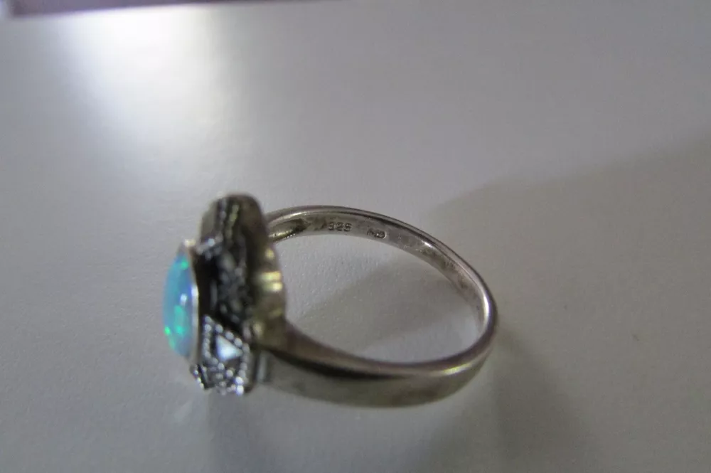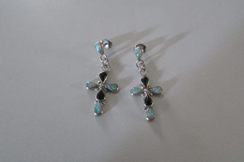 Fire opal, marcasite, and onyx with sterling silver jewelry set. Set includes a pair of cross earrings, a pendant (no chain included), and a ring. The ring is a size 8 and is stamped/signed "M 925" on the inside. The pendant is stamped/signed "M 925" on the back. The stud dangle earrings are both stamped "sterling" on the back. Stamps/signatures shown in pictures. Sold together, not separate. Buyer will receive items exactly as pictured. Shipping is United States (US) only. If outside US, contact me.