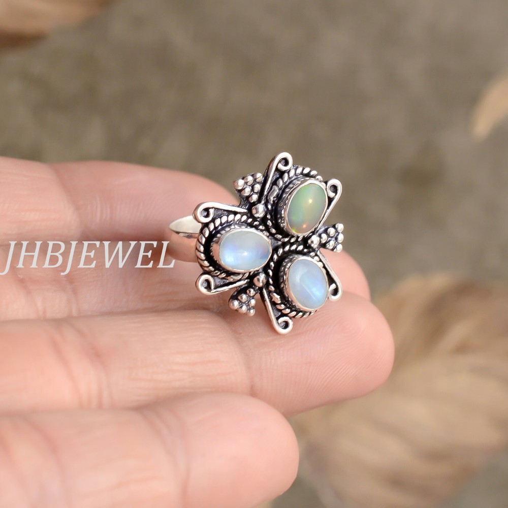 Welcome to jhbjewel Rainbow Moonstone & Fire Opal Gemstone 925 Sterling Silver Ring For Family Gift Payment Methods: We accept payments only by Payoneer and E-bay .Using this feature you can instantly pay by your credit card or from your PayPal balance. As this is a transaction service provided by eBay, you are assured for complete security in online payments. We will never know your credit card information. Payment should be made within 10 days since the winning of the first item. Non-paying winners will be reported to eBay. Serious bidders only please. Please email us with any questions you may have during the transaction. Shipping Information: US Shipping : $free Shipping International: $free Shipping Shipping & Delivery Time: We ship within 1-3 business days after payment is received. Delivery is generally within 15 TO 20 DAYS worldwide after shipping. We provide you each item is individually packed securely with quality products to help ensure safe and undamaged delivery. Packages are shipped via Registered International Air Mail. In rare cases it makes take up to 4 weeks for delivery depending up on the destinations and customs in your country. All packages have a fully filled customs declaration form in order to avoid any delay in customs. Returns Policy We want you to be100%satisfied with our products and our service. Your satisfaction is our priority. That's why we offer a simple 30days Money-Back Guarantee. If you are not completely satisfied with the purchase, simply send it back to us within 30 days of receiving it and we will issue you a full refund for your purchase - No Questions Asked! Return shipping charges are not reimbursable. Please contact us if you would like to in itiatea return, so that we may guide you through the process. We can be reached through the "Ask a question" link on the listing. All items must be in their original condition as received, not worn or altered. Product Pictures: All jewelry photos are taken by professional photographers. They use many photo equipment, like Flash, Day Light and etc. Some of the stone color might have effected a little. (Example: An amethyst stone is dark purple color, under the flash and lights it might affect the color a little and its hows little light purple instead of dark purple.) If you bring the jewelry outside under the sunshine you will see the same piece showing under the daylight. Please also note we have tried to keep the images as accurate as possible; however there might be some color variations in the images published on our store and the real product due to light effects & photography. FEEDBACK: Feedback DSRs (Detailed Seller Ratings). We want to earn your good feedback and 5 stars DSR rating. Unfortunately, 4 stars are considered a bad rating for sellers and can resulting restrictions on our account. Please help us maintain our business and give a 5-Star rating in all 4categories. We strive for 100% Customer Satisfaction and weal ways leave positive feed backs to our buyers. Our feedback and DSRs are extremely important to us as better DSR scores affect our search placement on eBay. If you still think that you still can? t leave a 5-Star across the Board, please email us or call us and we assure you that your issue will be resolved immediately. Sincerely, jhbjewel