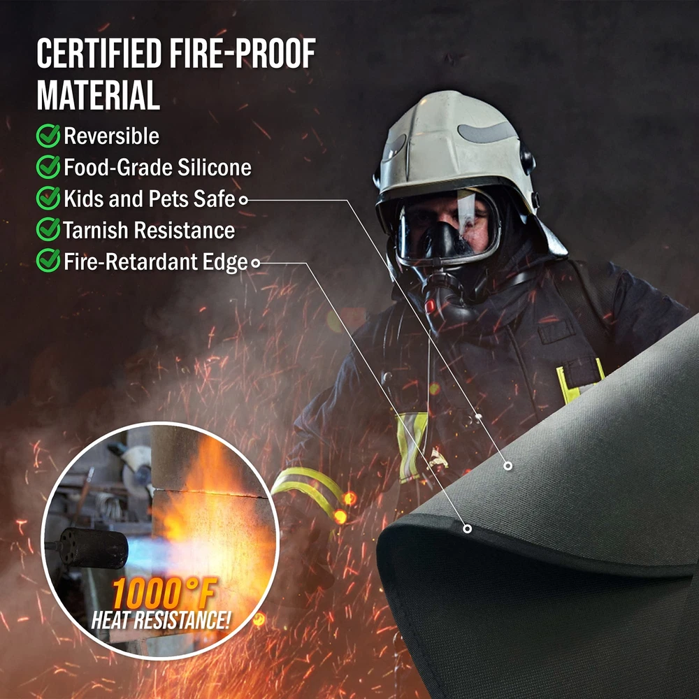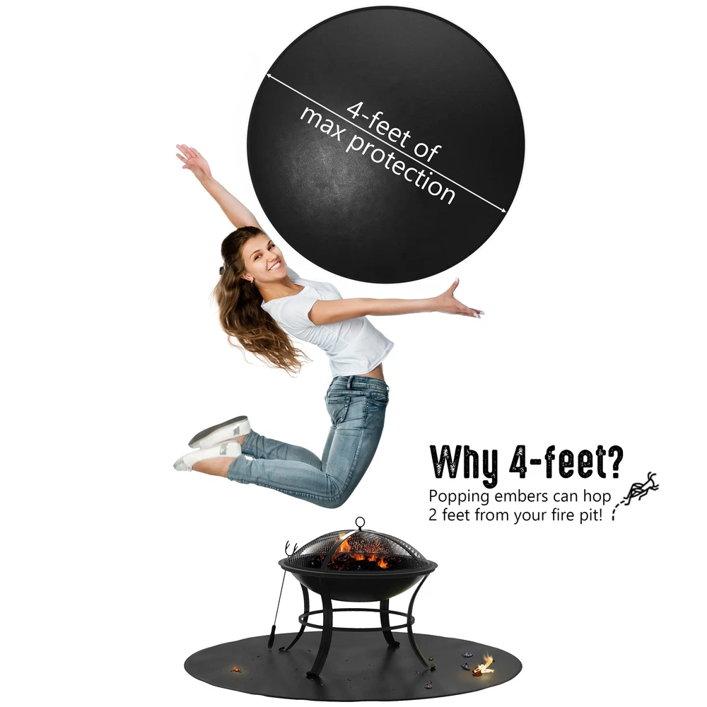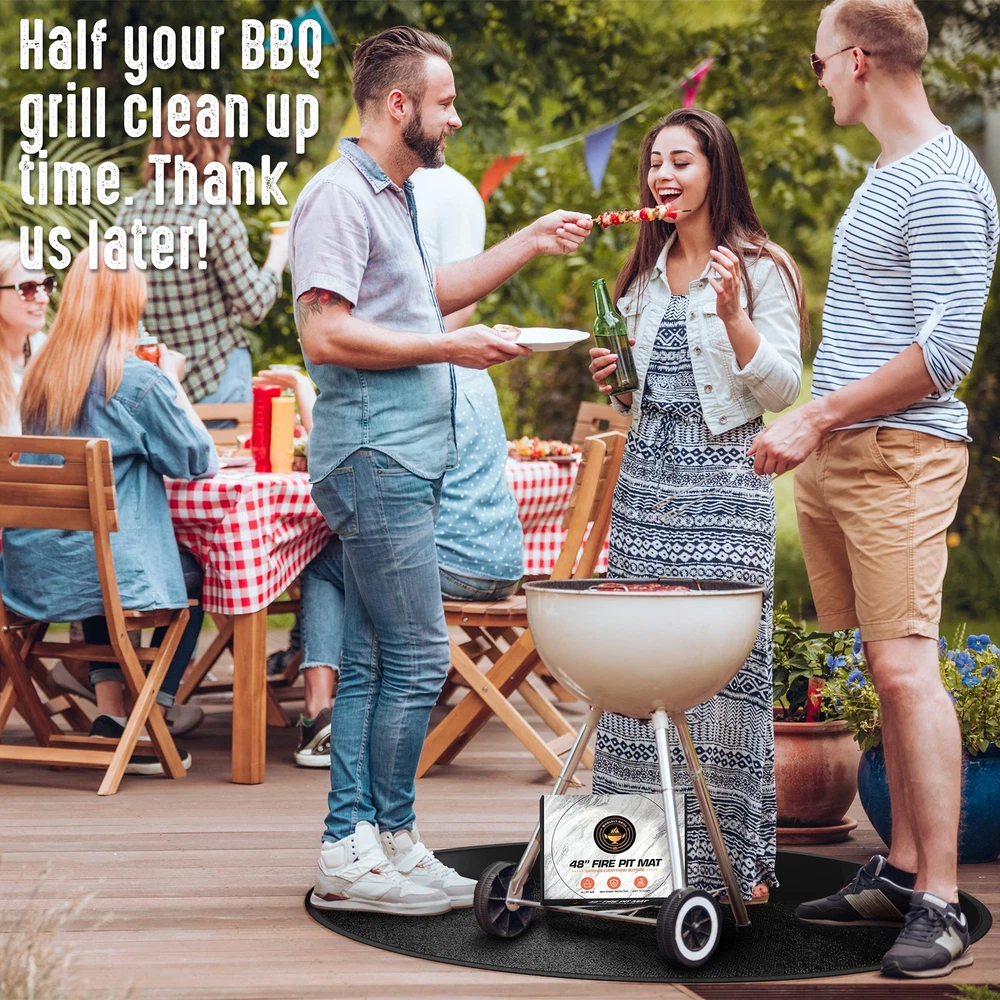 π¨π [ππ¨π₯π’π£πππ‘ πππ₯π§πππππ π ππ§ππ₯πππ ππ‘ππ―π±π¬π] Outdoor lawn, patio and deck protection from hot embers with Fireproof mat for fire pit. Compatible with widest range of fire pit sizes and models including propane stove and grill. Comes with Woven Bag, Premium Box and secret BBQ Sauce Recipe. Satisfaction guaranteed. π½ [πππ₯ππ π°π΄" ππππ ππ§ππ₯] fire pit mat that has market leading 4-feet catchment area for popping embers and drip stains. Peace of mind protection with one of the largest available; ideal for bonfire, propanes stoves, smokers, charcoal grills and chiminea. Use it as an all rounder rug under your BBQ grill to catch messy drips and stains too! π§― [ππππ ππππ§ π₯ππ¦ππ¦π§ππ‘π§] 1000F makes our mat the perfect fireproof mat or grill mats for outdoor grill deck protector. Designed specially for tiles, wood and composite decks. Comes with drawstring bag and beautiful premium box, perfect for gifting during special occasions. πͺ [ππ¨π₯ππππ, πππ¦π¬ πππ₯π, π£π’π₯π§ππππ] Bring it along for your camping trips as our mat is coated with food grade silicone that is non-toxic, safe for kids and pets. Our reversible mat or rug washes easily with a quick garden hose. Versatile and reversible mat can even be used for indoor fireplace too. π [ππ’πͺ π§π’ π¨π¦π] Simply lay out the mat under your fire pit. Caution: Use this mat only with fire pits that are more than 6 inches away from the mat for small pits. For those with large size pits, best to be 12" away from mat due to higher heat generation. Avoid lighting a fire directly on this outdoor mat. Compatible with Solo Stove that has a bonfire stand.