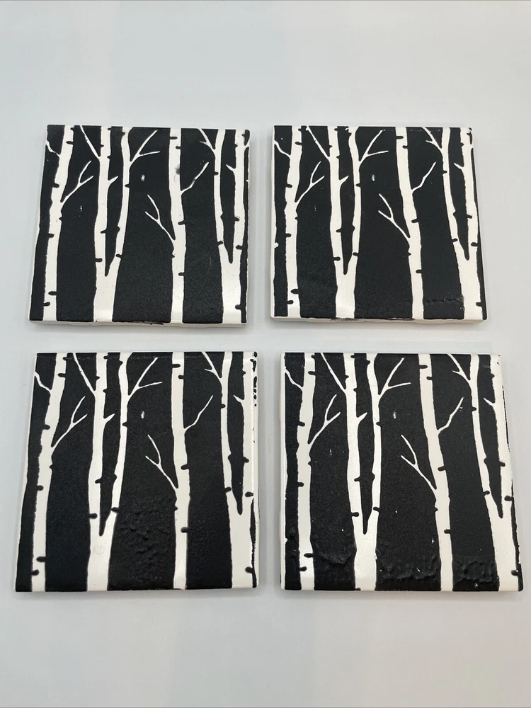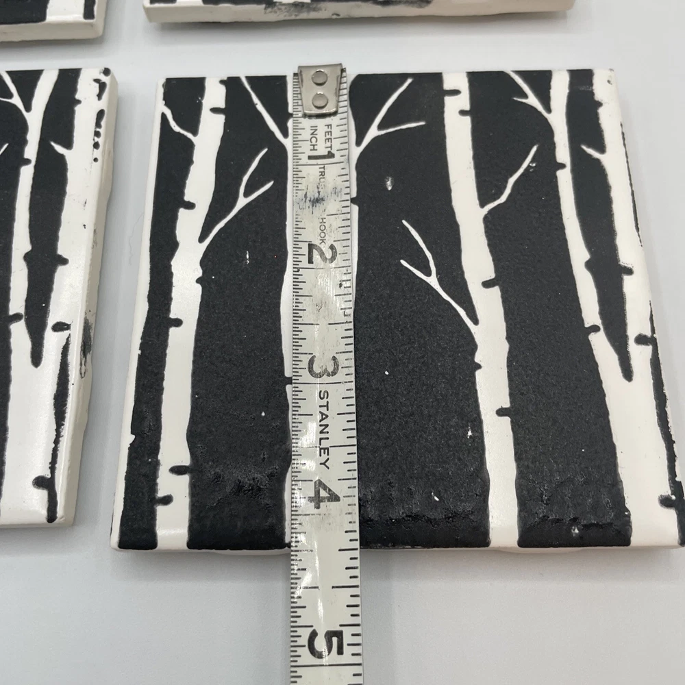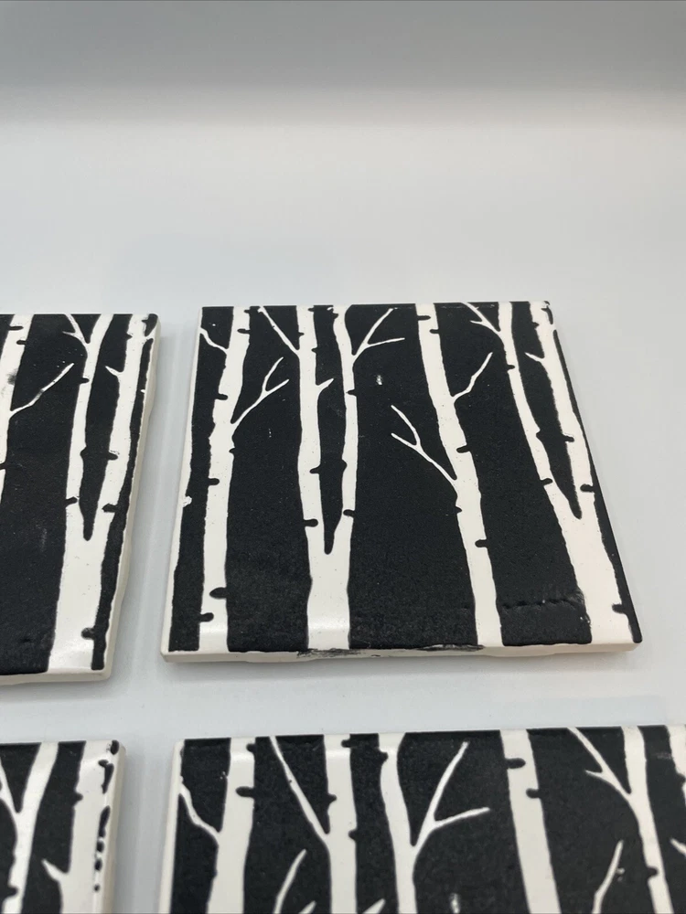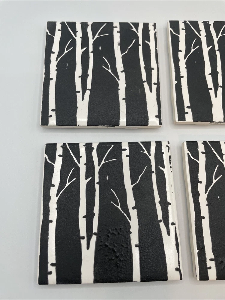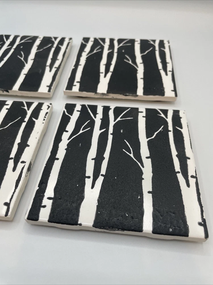 Fired up Handmade USA Made Terracotta Ceramic Tile Birch Trees 6” Trivets-4