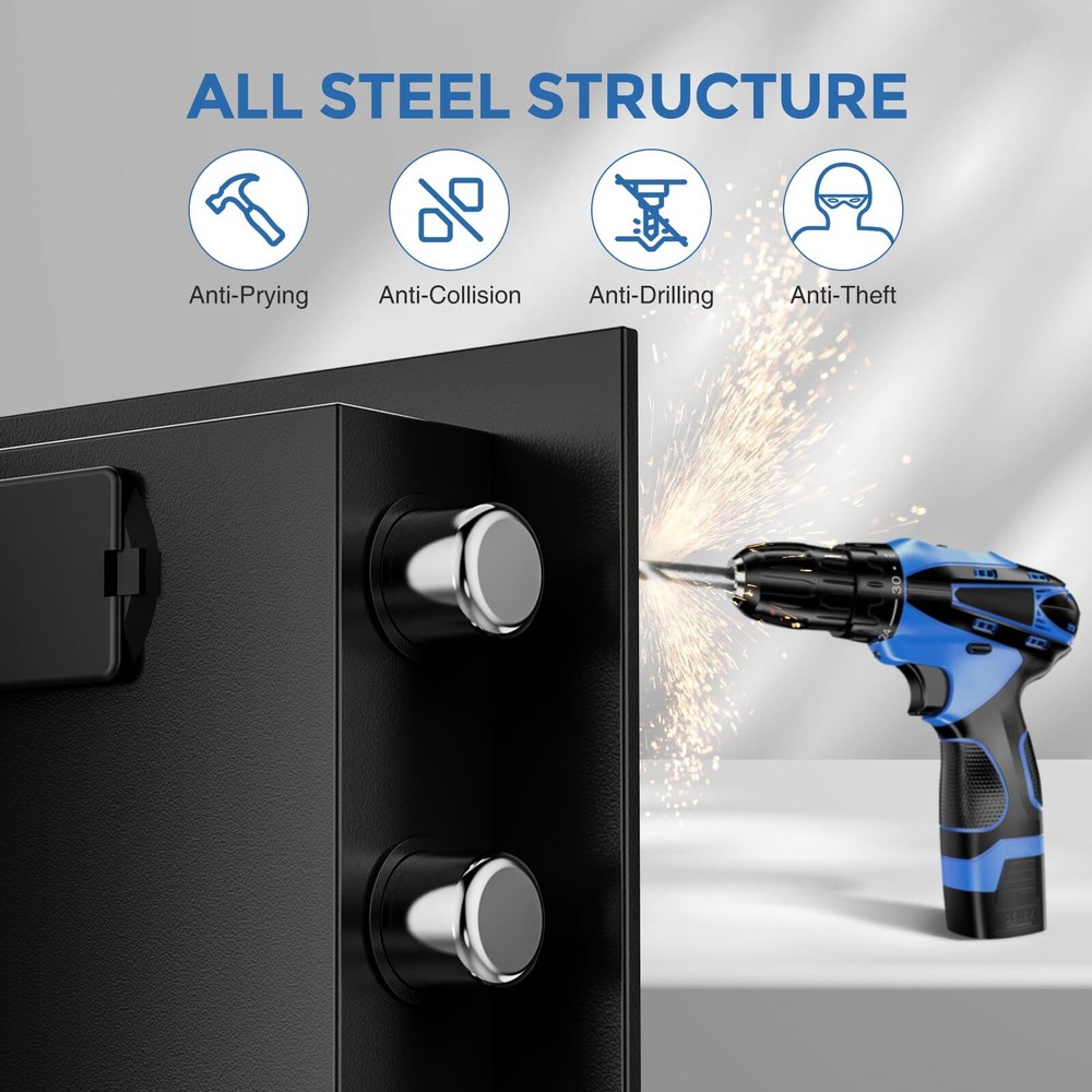 Security Home Safe Box, Cabinet Safe Box with Digital Keypad Safety Key Lock, Safety Box for Home Business Office Hotel Money Document Jewellery Passport Gun Storage 1.0 Cubic Feet Safe Durable: safe is made of low-carbon alloy steel plate, full penetration welding technology, surface phosphating treatment and environmentally friendly spraying increase wear resistance, rust resistance and scratch resistance Double Security Access: The safe is manufactured with 3 20 mm solid steel latches and reinforced solid doors to prevent unauthorized access, the safe comes with two manual keys that can be used to open the safe in an emergency Alarm System: Fireproof safe can enter 3 to 8 digit programmable code numeric keypad, after 3 consecutive wrong code input, the burglar alarm will activate warning beep, automatic locking system will be activated, keypad is disabled during alarm High Capacity: Our cabinet safes are equipped with removable partitions to meet flexible storage needs, ideal for homes, offices, hotels, storing a variety of valuables such as jewelry, guns, documents, gold bars and cash, etc Easy Installation: The anti-theft safe is easy to install, with four pre-drilled holes (4 expansion screws included) can be installed on the wall, floor, cabinet or anywhere you like, perfectly protecting your valuables Emergency Key and Battery Box: The safe is equipped with an emergency battery box, which can supply power when the battery of the safe is out of power. Contact the seller and tell the key lock cylinder code to re-match and make the key Good After-Sales Service: We are committed to providing customers with customer service for all personal security safes. If you have any questions or concerns, please feel free to contact us for a satisfactory answer Shipping We offer FREE shipping on all orders! We ship within Three business days of payment, usually sooner. We use a selection of shipping services such as UPS, FedEx, USPS etc. We only ship to the lower 48 states, no APO/FPO addresses or PO Boxes allowed. Local pickups and combined shipping options are not provided at this time. Return You can return a product for up to 30 days from the date you purchased it. Any product you return must be in the same condition you received it and in the original packaging. Please keep the receipt. Payment We accept payment by any of the following methods: PayPal Please pay as soon as possible after winning an auction, as that will allow us to post your item to you sooner! Feedback Customer satisfaction is very important to us. If you have any problem with your order, please contact us and we will do our best to make you satisfied. Contact Us If you have any queries, please contact us via ebay. We usually respond within 24 hours on weekdays. Please visit our eBay store to check out other items for sale! Thank you for shopping at our store.