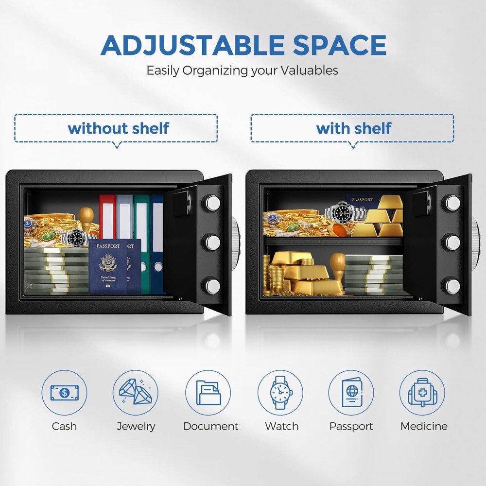 Fireproof Money Safe Box with Digital Keypad Sensor Light and Dual Key & Passcode Lock