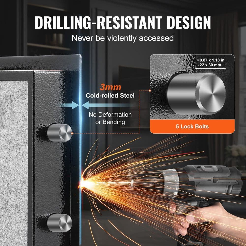 4 pre-drilled holes and expansion screws for easy mounting Steel construction w/3mm thick door plate for security Equipped w/5 solid doors bolts,providing superior protection SKYSHALO Safe Box-Top-notch Protection for Your Valuables. Crafted from reinforced steel,this safe boxoffers multiple storage compartments and various unlocking methods for convenience and security. Ensure your items are secured in a space that combines maximum safety w/privacy. Anti-movement design: the safe vault includes 4 pre-drilled holes in the back and bottom,along w/4 expansion screws,allowing you to securely mount it to a wall,floor,or shelf its large capacity is perfect for organizing cash,passports,jewelry,gold,watches,and documents it can be discreetly placed in drawers,... Simple life Single Door Safe Box,4.0 cu. ft. Safe Lock Boxw/Fireproof Bag and 2 Shelves for 4 pre-drilled holes and expansion screws for easy mounting Steel construction w/3mm thick door plate for security Equipped w/5 solid doors bolts,providing superior protection SKYSHALO Safe Box-Top-notch Protection for Your Valuables. Crafted from reinforced steel,this safe boxoffers multiple storage compartments and various unlocking methods for convenience and security. Ensure your items are secured in a space that combines maximum safety w/privacy. Anti-movement design: the safe vault includes 4 pre-drilled holes in the back and bottom,along w/4 expansion screws,allowing you to securely mount it to a wall,floor,or shelf its large capacity is perfect for organizing cash,passports,jewelry,gold,watches,and documents it can be discreetly placed in drawers,cabinets,or closets in homes,offices,or hotels Height adjustable and removable divider: the divider help you easily organize important items,allowing you to add or remove shelves as needed the built-in led light enhances visibility,making it easy to access valuables even in the dark Enhanced security: our safe and lock boxoffers 4 unlocking methods: using a key,fingerprint or a 3-12 digit code additionally,if you lose the key and the lock's battery is depleted,you can still use an external battery pack to power the lock and access the safe using the password Dual alarm system: featuring a dual alarm system,the lock boxwill sound an alert if the password is entered incorrectly 3 times in a row or if it experiences a strong impact this added security measure notifies you of any attempted theft,giving you peace of mind Maximum protection: the safe boxis made from high-quality alloy steel w/a 3mm thick door plate to ensure maximum security equipped w/5 solid door bolts,it provides superior protection against any attempted break-ins Specifications: model: ss-700zw,capacity: 4.0 cu. ft.,lock bolts: 5 bolts,diameter: 0.87x1.18"/ 22x30 mm,key rack: holds 5 keys,product weight: 24.80 kg / 54.79 lbs.,internal dimensions: 625x345x375 mm / 24.60x13.58x14.76 in.,product dimensions: 700x420x380 mm / 27.56x16.54x14.96 in. Package content: 4xiron expansion bolts,1xexternal battery box,1xfireproof bag,2xkeys,1xinstruction manual Color:Black|Features:No Additional Features|Fire Test Duration:Non-Fireproof|Fire Test Temperature(F):Non-Fireproof|Includes:No Additional Features|Installation Type:Freestanding|Lock Type:Keyed|Material:Steel|Product Weight(lb.):57.79 lb|Protection Against:No Additional Protection|Safe Capacity(cu. ft.):4|Safe Size:Medium|Manufacturer Warranty:1-Year|Interior Depth(in.):14.76|Interior Height(in.):24.6|Interior Width(in.):13.58|Product Depth(in.):16.54 in|Product Height(in.):27.56 in|Product Width(in.):14.96 in Item Specifics UPC 077685491164 MPN DMBXXLS3139C2FQ89V9-SK0526 Type Drop Safes Brand SKYSHALO Payment If you do not have a PayPal account, to get started and buy your first item with us is very easy. Simply click on the 'Buy It Now' button and follow the eBay checkout steps. Select PayPal as the payment method you then will be given the chance to enter your card details in to PayPal's secure checkout in order to pay for your order. Shipping 1. Normally all of parcels would be shipped within 3days(From Monday to Saturday). 2. We provide three kinds of shipping for choice. Shipping way depend on delivery address. Returns If an unit is received defective, of course we take it back or replace it. If the unit is received as expected, we must charge for our expenses if you want to send it back. We have to charge for the work of handling, retesting and restocking. Contact Us Dear buyer, Thank you for visiting my store! Our warehouses are located in many regions around the United States. According to the customer's delivery address. Use USPS/UPS/DHL logistics transportation service. Prioritize the best quality logistics solutions to transport packages. Ensure package delivery time, At the same time. Have any after-sales problems, Feel free to contact us. At your service Simple life DESCRIPTION PAYMENT SHIPPING RETURN POLICY CONTACT US Single Door Safe Box,4.0 cu. ft. Safe Lock Boxw/Fireproof Bag and 2 Shelves for 4 pre-drilled holes and expansion screws for easy mounting Steel construction w/3mm thick door plate for security Equipped w/5 solid doors bolts,providing superior protection SKYSHALO Safe Box-Top-notch Protection for Your Valuables. Crafted from reinforced steel,this safe boxoffers multiple storage compartments and various unlocking methods for convenience and security. Ensure your items are secured in a space that combines maximum safety w/privacy. Anti-movement design: the safe vault includes 4 pre-drilled holes in the back and bottom,along w/4 expansion screws,allowing you to securely mount it to a wall,floor,or shelf its large capacity is perfect for organizing cash,passports,jewelry,gold,watches,and documents it can be discreetly placed in drawers,cabinets,or closets in homes,offices,or hotels Height adjustable and removable divider: the divider help you easily organize important items,allowing you to add or remove shelves as needed the built-in led light enhances visibilit