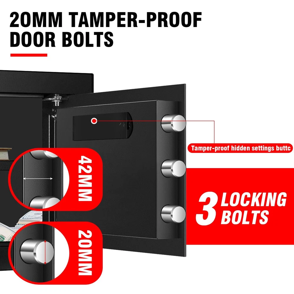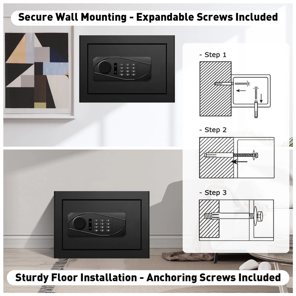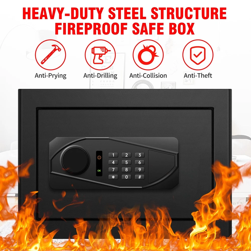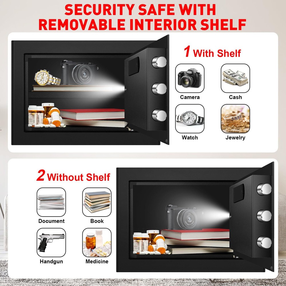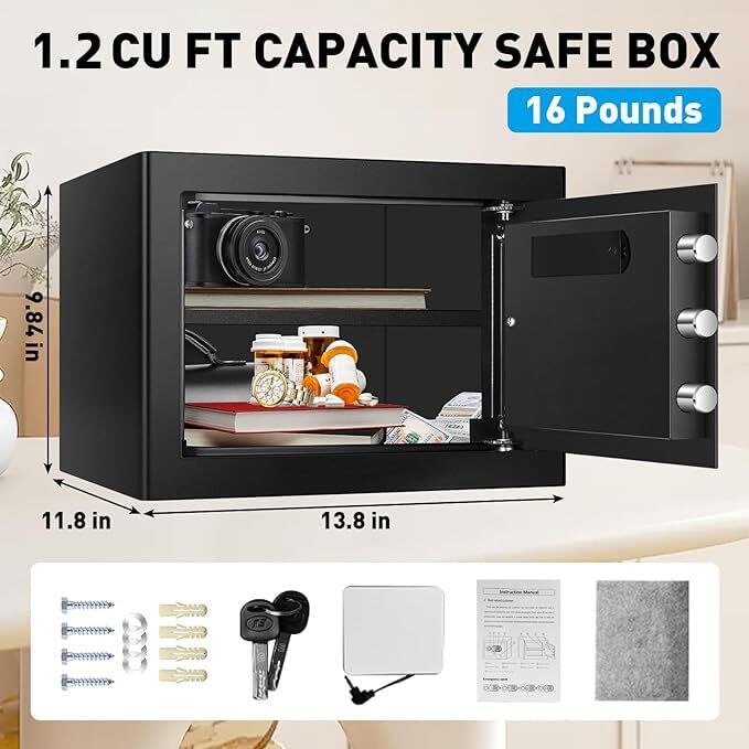 This safe is a game-changer! The perfect size fits easily in any room while keeping valuables secure. The digital keypad is super convenient, and the fireproof/waterproof design gives total peace of mind. Love the built-in light—makes accessing items at night a breeze. Great for documents, cash, or even medications. Highly recommend for home or office use!