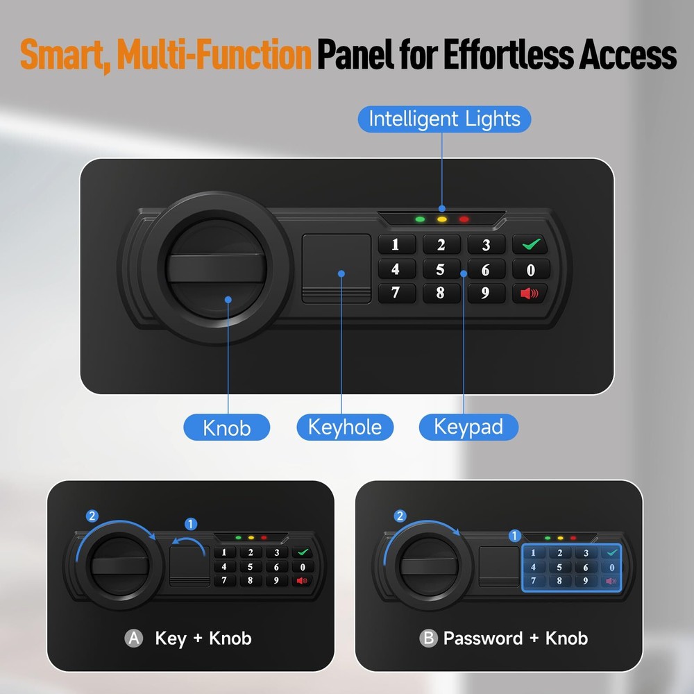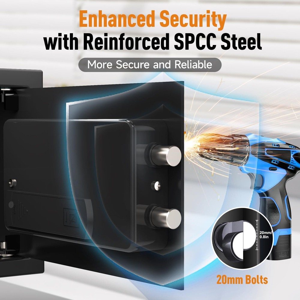 <1.0 cu.ft.>Digital Fireproof Safe for Home Documents, Small Safe Box with Removable Shelf for Guns and Valuables for Office, Hotel, Silent Model, Wall&Floor Mount, 9.84"D x 13.78"W x 9.84"H đ„ăEnhanced SecurityăBuilt for ultimate protection, this safe box is made from high-strength SPCC steel and features a reinforced thickened door, 2 x 20mm solid steel bolts, and pry-resistant concealed hinges. These robust security features provide exceptional durability and protection against tampering. For added safety, the package includes a fireproof bag, offering dual protection against theft and fireâkeeping your most valuable belongings secure. đ„ Spacious & Versatile: With a generous 1.0 cubic feet capacity, this safe provides ample storage for a variety of items. From important documents and jewelry to cash and small electronics, itâs designed to accommodate your needs. Its spacious interior includes a fully lined surface to prevent scratches and a removable shelf for better organization. Whether for home, office, or dorm use, this safe offers versatile storage solutions. đ„ă2 Easy Access MethodsăUnlock the safe using two convenient methods: · Digital keypad â Set up a user code and master code for secure access. · Emergency key â Use the key and knob for quick access if the password is forgotten. This flexible design ensures both security and ease of use. đ„ăEasy Installation OptionsăMeasuring 9.84" D Ă 13.78" W Ă 9.84" H, this safe is designed for convenient installation in home cabinets, offices, or dorms. It comes with pre-drilled mounting holes on the back and bottom, along with expansion screws for secure wall or floor mounting. đ„ăComplete Package & Reliable SupportăEach package includes: â 1 x Safe Box â 1 x Fireproof Bag â 2 x Emergency Keys â 4 x Mounting Bolts â 1 x Scratch-Resistant Carpet â 1 x User Manual provides 24/7 customer support to address any inquiries or concerns. Trust our secure and user-friendly safe to protect your valuables with top-tier security and convenience. Shipping We offer FREE shipping on all orders! We ship within Three business days of payment, usually sooner. We use a selection of shipping services such as UPS, FedEx, USPS etc. We only ship to the lower 48 states, no APO/FPO addresses or PO Boxes allowed. Local pickups and combined shipping options are not provided at this time. Return You can return a product for up to 30 days from the date you purchased it. Any product you return must be in the same condition you received it and in the original packaging. Please keep the receipt. Payment We accept payment by any of the following methods: PayPal Please pay as soon as possible after winning an auction, as that will allow us to post your item to you sooner! Feedback Customer satisfaction is very important to us. If you have any problem with your order, please contact us and we will do our best to make you satisfied. Contact Us If you have any queries, please contact us via ebay. We usually respond within 24 hours on weekdays. Please visit our eBay store to check out other items for sale! Thank you for shopping at our store.