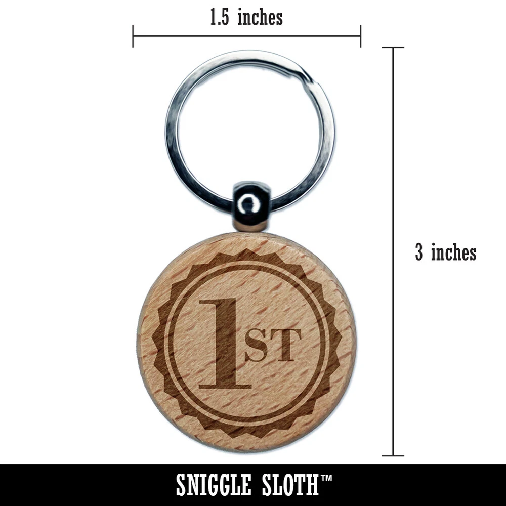 First 1st Place Circle Award Engraved Wood Round Keychain Tag Charm