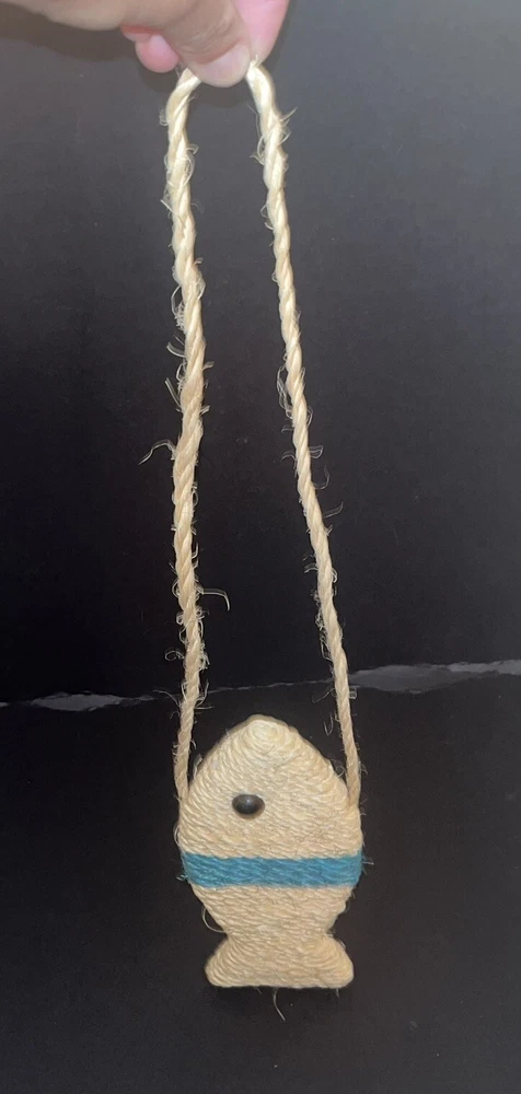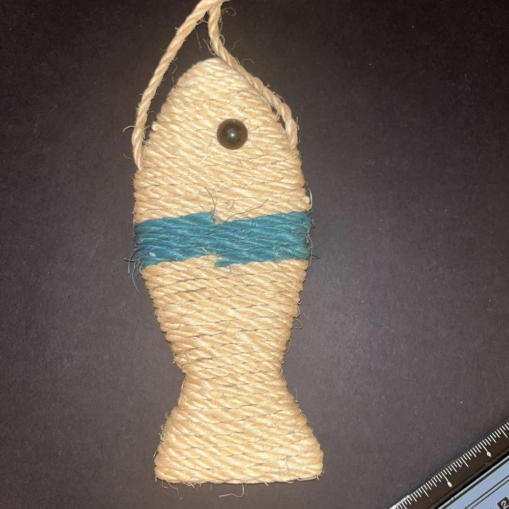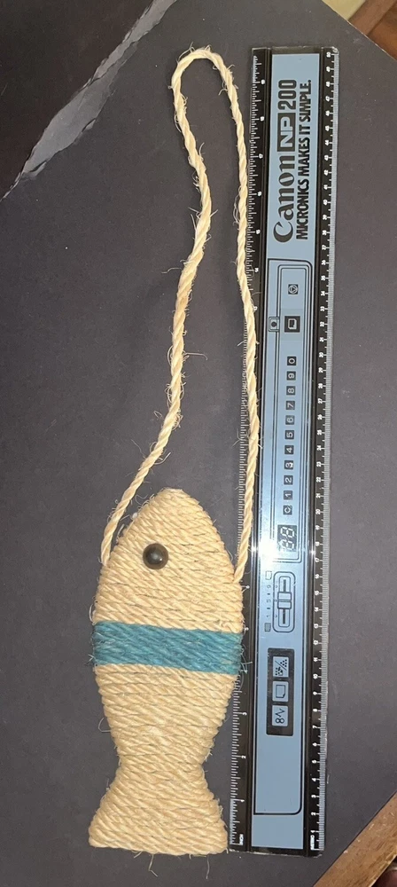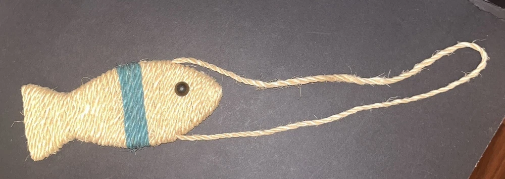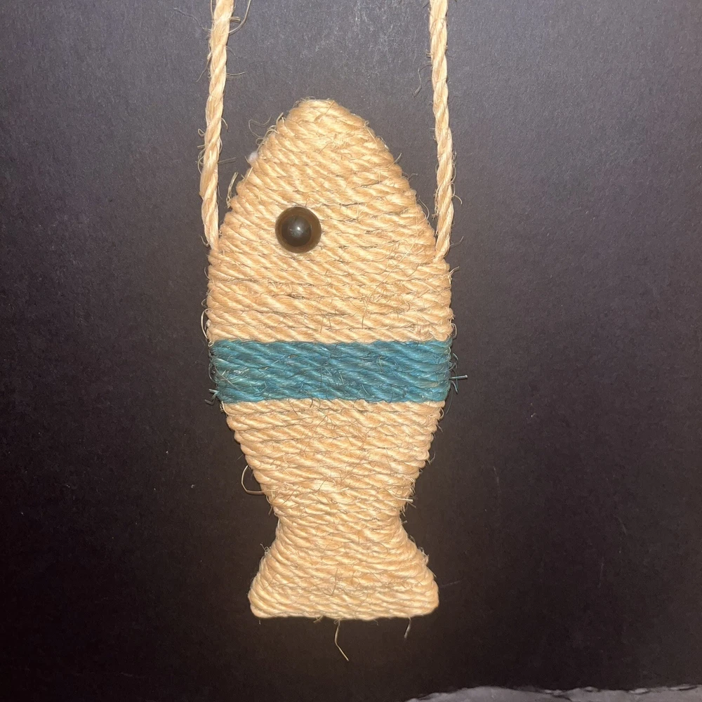 Fish Shaped Sisal Cat Scratching Toy Hanger Decor Beige Teal Black Plastic Eye