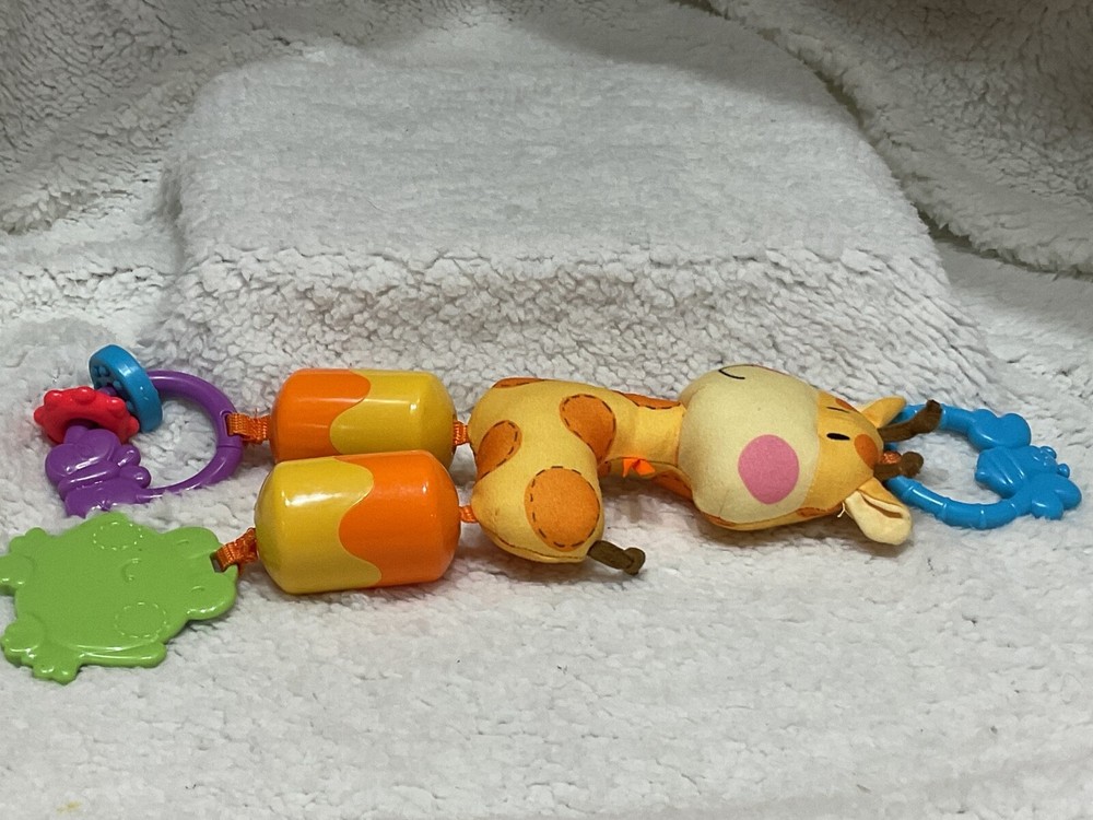 The Fisher Price Discover and Grow Stroller Chime Giraffe Frog Butterfly Shapes Toy is an engaging activity toy designed for babies. With a safari-themed design, this multicolor toy encourages hand-eye coordination, motor skills, and chewing abilities. Suitable for both boys and girls, this unisex toy adds an element of fun and development to stroller time.