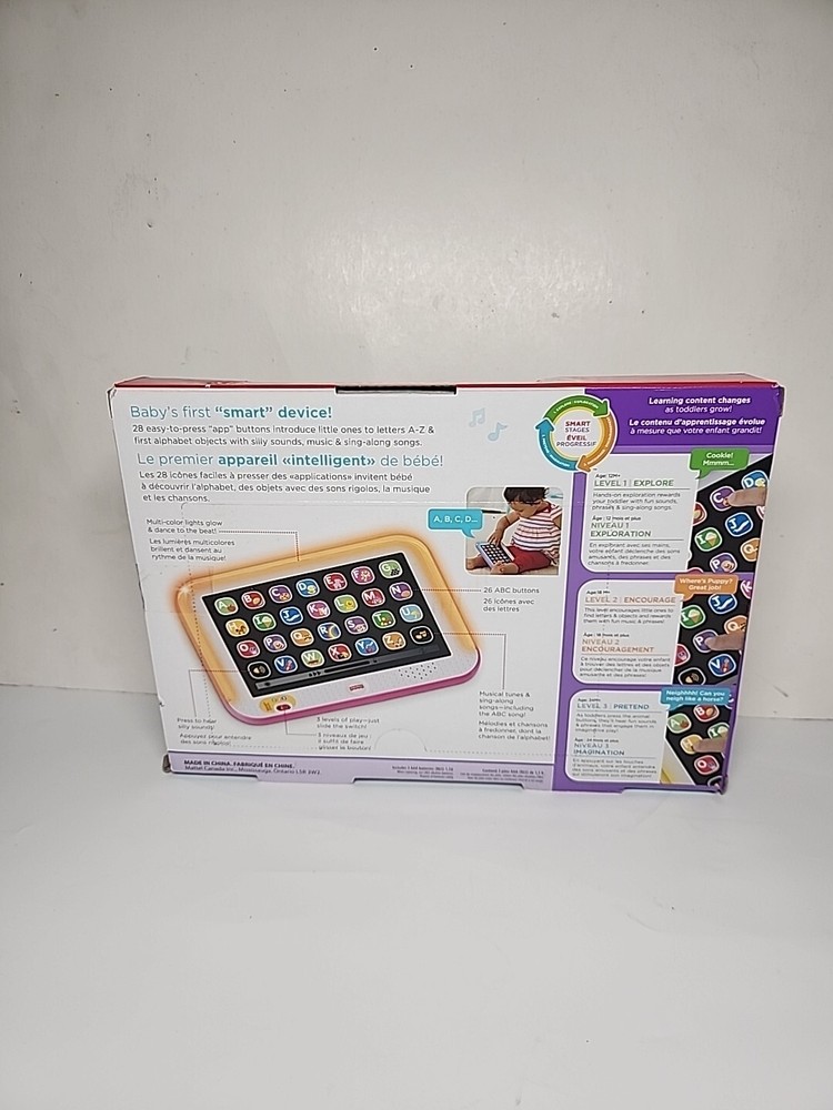 Fisher Price Laugh Learn Smart Stages Tablet is a toddler toy that helps in a child's development. It is a pink colored learning tablet designed for babies aged 12-36 months. The tablet features letters and is perfect for babies learning how to read and write.