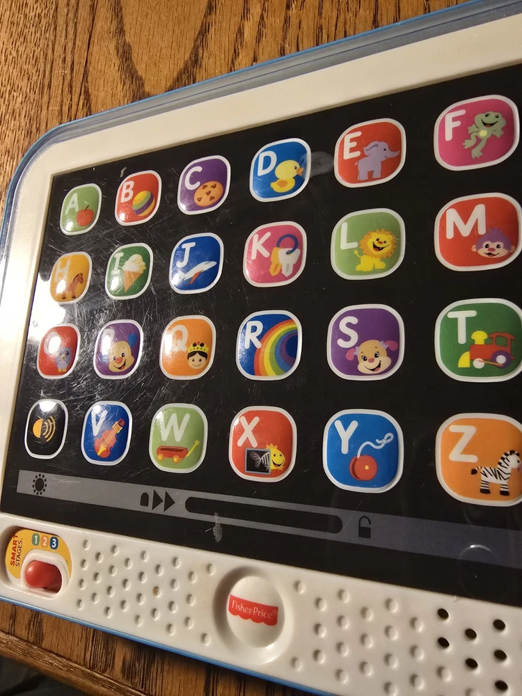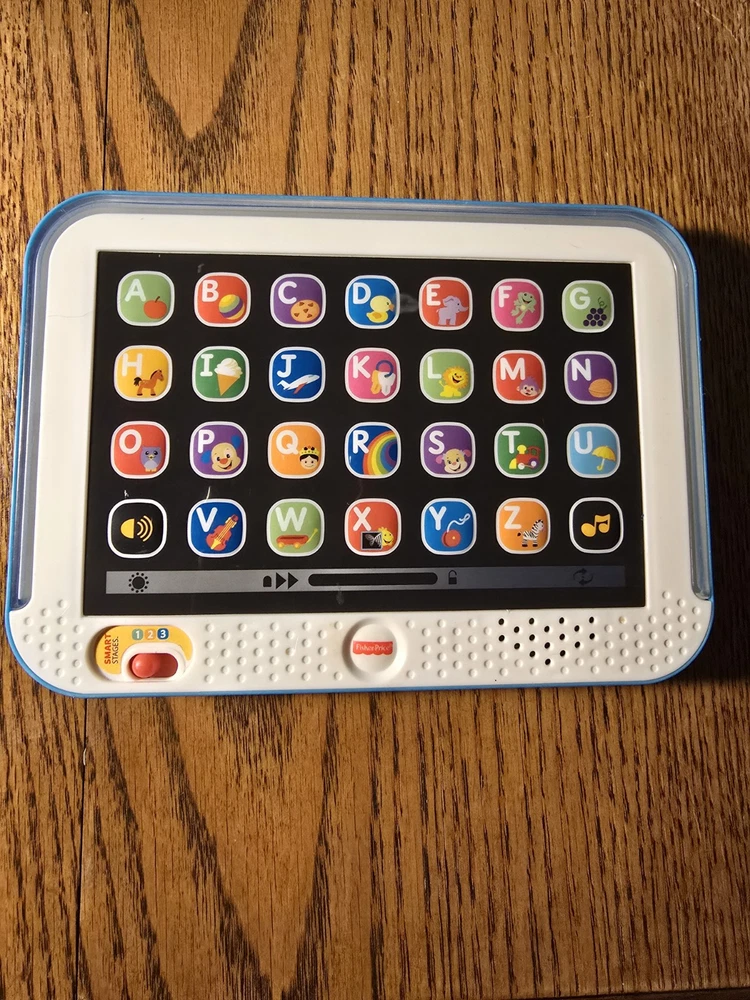 Fisher-Price Laugh & Learn Smart Stages Kids Tablet is a learning toy designed for children aged 12-36 months. It features a gray color and a theme of letters and colors. The tablet is made by Fisher-Price and is part of their Smart Stages series. It is intended for unisex use and is not part of a custom bundle. The tablet is designed to help children develop their language and memory skills.