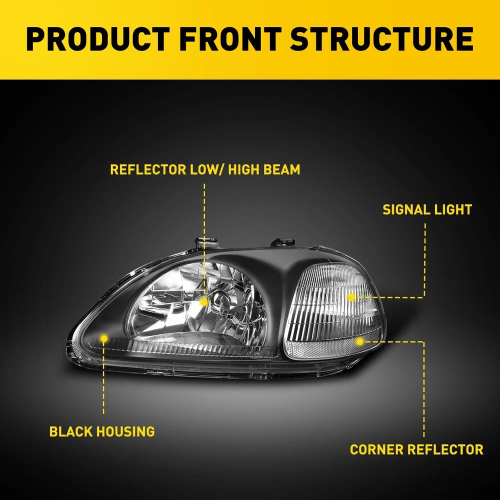 Fit for: 1996-1998 Honda Civic Specifications: OE number: 203162011 203161011 33151S01305 33101S01305 33101S01A01 33151S01A01 HO2502110 HO2503110 Material: ABS+PC (ABS Plastic Housing/Polycarbonate lens) Appearance color: 1.Housing Color:Black 2.Lens Color:Clear 3.Reflector Color:White Note: Projector ×(Not Include) DRL × (Not include) Bulb × (Not include) Features: *Easy to install: Direct replacement, drilling and cutting are not required. *Superior quality: Fit 1996-1998 Honda Civic Black Headlights Replacement Left+Right Pair 96 97 Fit for: 1996-1998 Honda Civic Specifications: OE number: 203162011 203161011 33151S01305 33101S01305 33101S01A01 33151S01A01 HO2502110 HO2503110 Material: ABS+PC (ABS Plastic Housing/Polycarbonate lens) Appearance color: 1.Housing Color:Black 2.Lens Color:Clear 3.Reflector Color:White Note: Projector ×(Not Include) DRL × (Not include) Bulb × (Not include) Features: *Easy to install: Direct replacement, drilling and cutting are not required. *Superior quality: Made of ABS and PC materials with toughness and heat resistance functions to ensure its long service life and durability. *Angle adjustment: Equipped with a headlamp Angle adjustment knob, you can adjust the best Angle of view through the knob. *Suggestion: 1.Please confirm the OE number before purchasing!!! 2.Professional installation is required!!! Packaging include: Headlights*2(Left+Right) Item Specifics Brand AUXITO Lighting Technology Halogen Type Headlight Assembly Features Reflector Housing, SAE-Certified, Sealed Assembly Housing Color Black Placement on Vehicle Front Left,Right Light Color No Bulb Lens Color Clear Reflector Color White Manufacturer Part Number HDCV96.03 Color Temperature \ Voltage 12 V Mounting Style Screws Vintage Part Yes Performance Part Yes Manufacturer Warranty 5 Years Universal Fitment No Number of Bulbs 0 Finish Smooth Model For 1996-1998 Honda Civic OE/OEM Part Number 203162011 203161011 33151S01305 33101S01305 Quantity 2 Headlight assembly Packaging include Left & Right Side Headlights Assembly Bulbs Included Not Included Bulb Shape Code Please Use Stock Bulbs Include Projector Not Included Include DRL Not Included Fitment Type Direct Replacement Assembly Type Composite Type Headlight Assembly Mounting Hardware Included No Certifications DOT, SAE Dust and Moisture Protection Yes Waterproof Yes Ballast Included No Applicable Regions US Items Included Headlight Assembly Bulb Shape Code Just like the original Wattage \ Interchange Part Number 33101S01A01 33151S01A01 HO2502110 HO2503110 FAQ ♥ If you have a decoding problem or any other problems, please contact us first, we will help you with it. We will reply you within 24 hours in working days. I'm a new seller, thanks a lot for your trust and convince! I will serve you with all my heart. ♥ Q1: Will this bulb fit my vehicle? A: We can match almost any vehicle to one of our bulb sizes. eBay only lets us include some vehicle fitments per listing, but if your vehicle does not show up on the compatibility table at the top of our listings, welcome you to contact us for free consulation before purchasing a product. Q2: My item has not arrived, what's taking so long? A: Sometimes items take longer than expected, especially if it’s going far or to rural area. Check with your post office to see if your item has been held up. Sometimes Royal Mail will not update a tracking number until it has arrived at its destination. If your item still don't arrive after a few days, let us know so we can double check for you and help solve it asap. Q3: My bulbs won't fit, help! A: Special bulb holder may be required. See if you can take the holder from the stock bulb. If not, let us know. The bulb size may be wrong, double check the item you received with the item you ordered. Do you have an aftermarket lighting housing? These may not be perfectly fitted for aftermarket bulbs and will require some manual modifications. Q4: Neither side lighting up? Both sides flicker, hyper flash, or work inconsistantly. A:Check the light fuses, and then check the ballast plugs to insure correct installation. If this doesn't work, there may be a voltage problem with the vehicle. You probably just need a relay or capacitor. Even though some bulbs are builtin resistors, they may still need a decoder. Payment (1). We gladly accepts payment via PayPal, We will ship your item(s) within 24 hours. (2). Before payment, please keep the consistency of Paypal address and ebay address. (3). Quantity orders are welcome! Returns (1). We offer 60 days free return policy. Please contact us within 60 days from the date you receive your order if you have any issues with the product or want return. Refund will be send after we got your resend package. (2). All returned items should be in the original packaging , return tracking information should be provided . Contact us (1).Negative feedback will not help resolve any problems you have, please contact us via eBay messages before leaving negative feedback , our customer service will make best effort to help you with the issues. (2).We maintain high standards of excellenceand strive for 100% customer satisfaction! Feedback is very important to us. We request that you contact us immediately before you give us neutral or negative feedback, so that we can satisfactorily address your concerns. About us We're professional in car and motorcycle accessories, especially in LED bulbs. We have our own factory and R&D team. Our belief is to sell top quality items that fit your car and serve you with our heart. Anything please feel free to contact us! Our customer service is very responsibility. Come and follow us! DESCRIPTION PAYMENT SHIPPING RETURN POLICY CONTACT US Shop Category Store Home Other Hot Item Front Headlight Lamp Filler Molding Trim Panel For Toyota 2012-2015 Tacoma S USD 18.99 5/16" Marine Outboard Boat Motor Fuel Gas Hose Line Assembly with Primer Bulb US USD 19.94 BLACK ROOF TOP TRIM MOLDINGS FOR 2006 2007 2008 