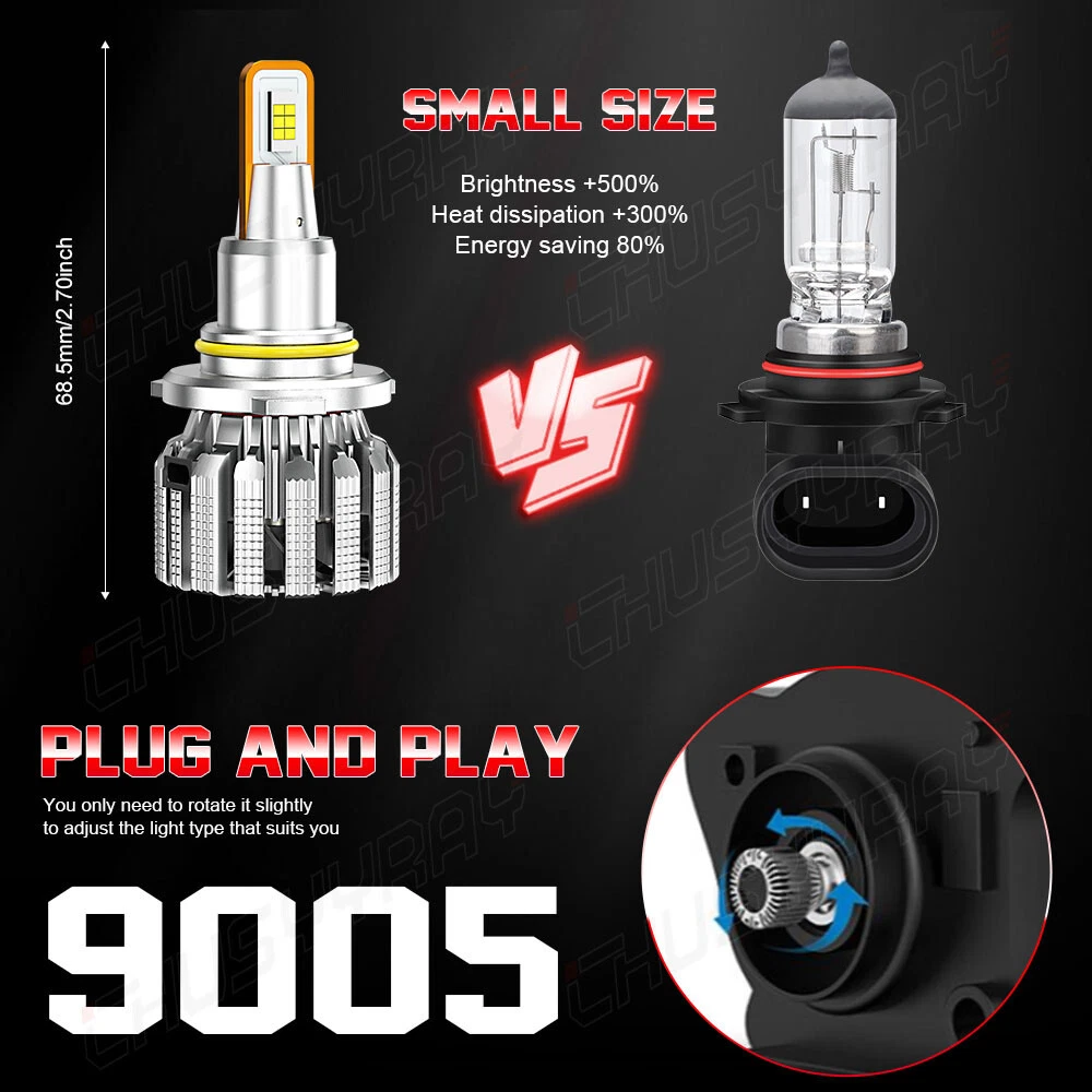Product Parameters: Light source: 3570 Material: Aviation Aluminum Working Voltage: 9-23V Color temperature: 6000K Lumen: 10000LM Life: 50000 hours Working environment: -40℃~80℃ Waterproof grade: IP67 Product Performance: 1)SUPER BRIGHT 3570 LED CHIP 0.5mm thinnest LED spacing,the shorter the distance the better spotlight,super focused beam design,no dark spot. 2)ROTATABLE DESIGN Removable collar ring,you can now adjust the beam angle to a perfect one.Fit for 98% headlamp covers on market 3)COOLING SYSTEM,FOUR WAYS HEAT DISSIPATION Copper heat conduction;Evaporation from aviation aluminum;Polyhedral grid;Built-in turbo fan,silent and high speed. 4)IP67 WATERPROOF DESIGN For the most extreme conditions,with explosion-proof,shockproof,hign temperature hign pressure and other charateristics. 5)Small outer diameter, easy to install, high brightness, very concentrated, and fast heat dissipation. 6)Wider and further illumination areas than halogen lamp,300% brighter than traditional halogen lamps. 7)White light source, easy to accept by human eyes, will not feel tired Package Included: 2x LED 9005/HB3 headlight bulbs high beam 2x LED 9006/HB4 headlight bulbs low beam 2x LED H11/H8/H9 foglight bulbs New and old packaging will be shipped randomly Information: If you are unsure the item fit or not , please do remember send message to tell us your car make, model, year and other information which is helpful to check the item fit or not. For example: For 2004 Ford F150, high/low beam For 2015 RAM 1500 with projector-type, high beam For 2019 Ford F150 ,XL Crew Cab Pickup 4-Door 2.7L Notice: 1.The product must be installed by professionals. Please disconnect the car battery before installation. Please check the wiring after installation. 2.Please reserve enough space in the headlight housing for installtion and heat dissipation. All our products are manufactured under the strictest quality control. If the project is not functioning properly, please contact us by email first. If you have any questions, please contact us in time.