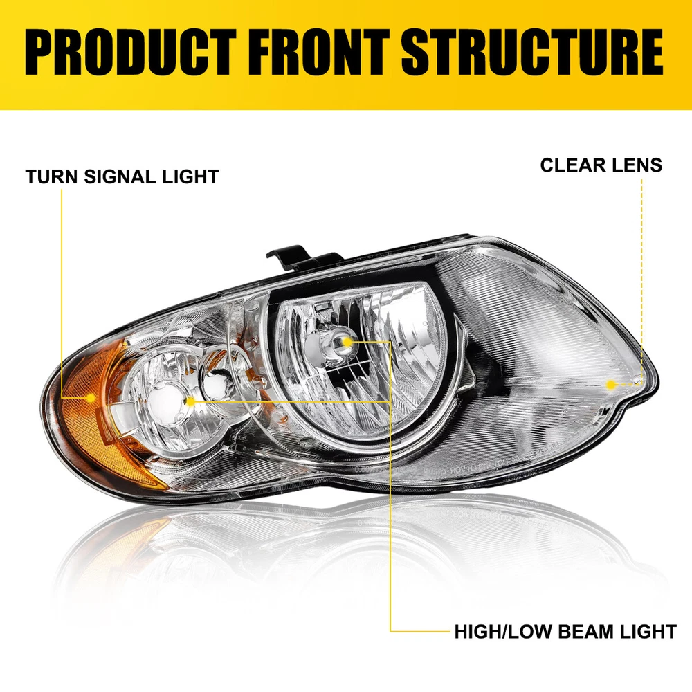 Fit for: 2005-2007 Chrysler Town & Country Van 4-Door With Long Wheel Base Models Specifications: OE number: 4857991AD, 4857990AD 4857991AB, 4857990AB CH2502152, CH2503152 Material: ABS+PC (ABS Plastic Housing/Polycarbonate lens) Appearance color: 1.Housing Color:Chrome 2.Lens Color:Clear 3.Reflector Color:Amber Note: Projector ×(Not Include) DRL × (Not include) Bulb × (Not include) Features: *Easy to install: Direct replacement, drilling and cutting are not required. *Superior quality: Fits Chrysler Town & Country 3.3L 3.8L 2005-07 Headlights Assembly Set Pair Fit for: 2005-2007 Chrysler Town & Country Van 4-Door With Long Wheel Base Models Specifications: OE number: 4857991AD, 4857990AD 4857991AB, 4857990AB CH2502152, CH2503152 Material: ABS+PC (ABS Plastic Housing/Polycarbonate lens) Appearance color: 1.Housing Color:Chrome 2.Lens Color:Clear 3.Reflector Color:Amber Note: Projector ×(Not Include) DRL × (Not include) Bulb × (Not include) Features: *Easy to install: Direct replacement, drilling and cutting are not required. *Superior quality: Made of ABS and PC materials with toughness and heat resistance functions to ensure its long service life and durability. *Angle adjustment: Equipped with a headlamp Angle adjustment knob, you can adjust the best Angle of view through the knob. *Suggestion: 1.Please confirm the OE number before purchasing!!! 2.Professional installation is required!!! Packaging include: Headlights*2(Left+Right) Item Specifics Brand AUXITO Lighting Technology Halogen Type Headlight Assembly Features DOT-Certified, Reflector Housing, SAE-Certified, Sealed Assembly Housing Color Chrome Placement on Vehicle Front, Left, Right Light Color Warm White Lens Color Clear Reflector Color Amber Manufacturer Part Number DYH128735LIGHTS Color Temperature 6000K Mounting Style Screws Voltage 12 V Vintage Part Yes Performance Part Yes Manufacturer Warranty 1 Year Universal Fitment Yes Lumens 10000 lm Finish Smooth Model For Town & Country Van 4-Door Headlights Material ABS, PC, PMMA Quantity 2 Packaging include Driver & Passenger Side Headlights Assembly Items Included No Bulbs Headlight Style Reflector Headlights Lightning Type Reflector High & Low Beam Automotive lighting systems Dual Beam Headlights systems Fitment Type Direct Replacement Assembly Type Composite Bulb Shape Code Please Use Stock Bulbs Mounting Hardware Included No Certifications DOT, SAE Dust and Moisture Protection Yes Waterproof Yes Ballast Included No Applicable Regions US Components Included Lens & Housing Attention 1 Fits models with 119" long wheel base only Attention 2 Do not fit models with 113'' wheel base OE/OEM Part Number CH2502152, CH2503152, 4857991AB, 4857990AB Payment Returns DESCRIPTION PAYMENT SHIPPING RETURN POLICY CONTACT US Shop Category Store Home LED Headlight ◈ H4 ◈ H13 LED Reverse Light ◈ T15/921/W16W LED License Plate Light LED Side Marker Light Car Parts & Accessories Tail Light assemblies Other Hot Item Picture New List Item 2x For 2006-2009 Dodge Ram 1500 2500 3500 Chrome Clear Headlights Headlamps New USD 85.99 LED License Plate Tag Light For Lexus IS ES GS RX Toyota Camry Super White PUS USD 12.99 Clear Chrome Projector Head Lights Lamp For 2014-2015 Chevy Silverado 1500 LH RH USD 226.99 2pcs 9006 Fog Light Driving LED Foglight Bulbs Xenon White High Power 4000LM USD 23.99 FOR 06-11 HONDA CIVIC SEDAN HOUSING PAIR BLACK AMBER CORNER HEADLIGHT LAMP USD 69.99 Help & Info Payment Policy Shipping Policy Return Policy FAQ About Us Fits Chrysler Town & Country 3.3L 3.8L 2005-07 Headlights Assembly Set Pair Fit for: 2005-2007 Chrysler Town & Country Van 4-Door With Long Wheel Base Models Specifications: OE number: 4857991AD, 4857990AD 4857991AB, 4857990AB CH2502152, CH2503152 Material: ABS+PC (ABS Plastic Housing/Polycarbonate lens) Appearance color: 1.Housing Color:Chrome 2.Lens Color:Clear 3.Reflector Color:Amber Note: Projector ×(Not Include) DRL × (Not include) Bulb × (Not include) Features: *Easy to install: Direct replacement, drilling and cutting are not required. *Superior quality: Made of ABS and PC materials with toughness and heat resistance functions to ensure its long service life and durability. *Angle adjustment: Equipped with a headlamp Angle adjustment knob, you can adjust the best Angle of view through the knob. *Suggestion: 1.Please confirm the OE number before purchasing!!! 2.Professional installation is required!!! Packaging include: Headlights*2(Left+Right) Payment Returns All rights reserved. On Dec 17, 2024 at 18:01:43 PST, seller added the following information: