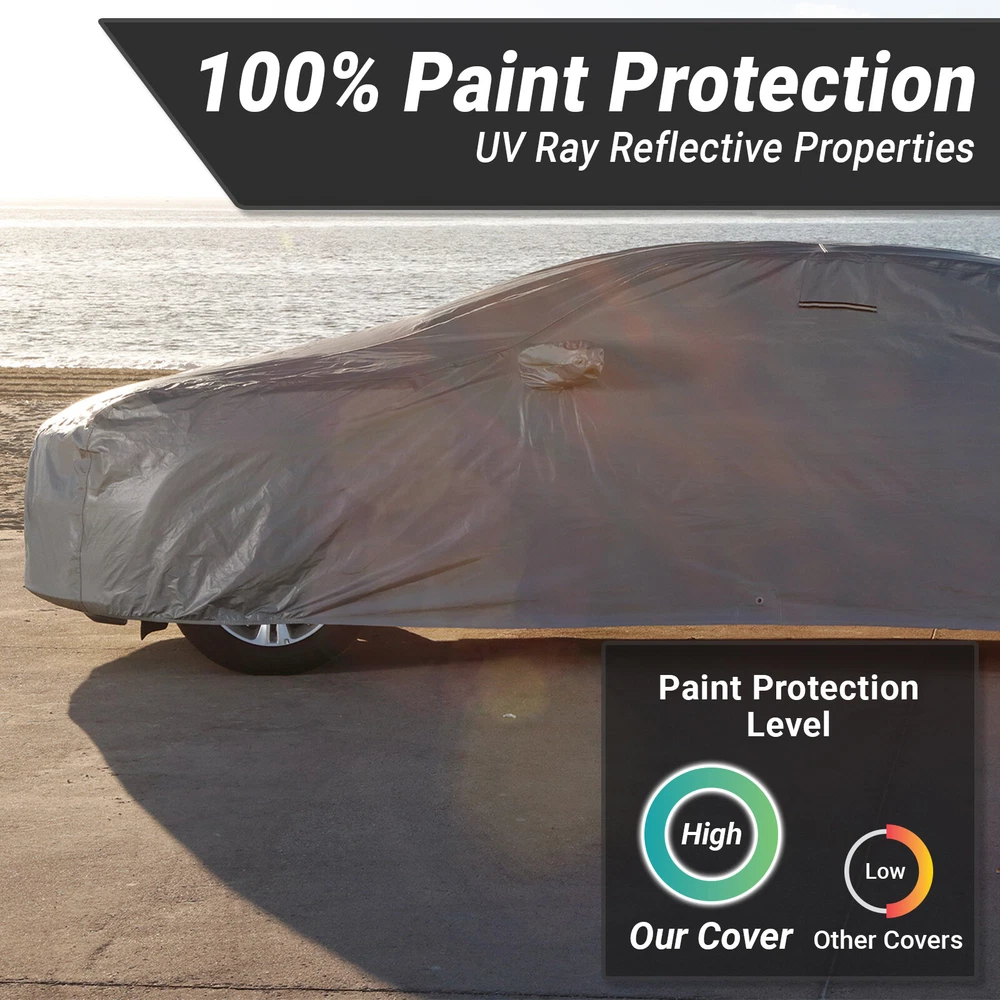 Advance Parts - Car Cover - eBay Advance Parts Protective Fabrics Outer Fabric Protective Outer Poly Vinyl Blend 100% Waterproof: Offer protection against rain, snow, and other types of moisture. Breathable: Helps prevent moisture from building up under the cover, which can lead to mold and mildew. Lightweight: Easy to handle, which makes them convenient to put on and off. Inner Fabric Soft Inner Non-woven Lining Scratch Resistant: Gentle on your car's paint, reducing the risk of scratches and abrasions. Breathable: Our inner lining allows air to circulate through the cover, keeping it dry. Durable: Strong enough to withstand the rigors of regular use without tearing or fraying. Maximize Protection from the Elements Maximize Protection Try our waterproof all-weather car cover with features like padded lining and breathable materials. Try our waterproof all-weather car cover with features like padded lining and breathable materials. Keep Your Car Looking New New Car Look Our car covers are not only functional but stylish as well. Choose from a variety of options. Keep your car looking new. Our car covers are not only functional but stylish as well. Choose from a variety of options. Innovative Covers for Indoor and Outdoors Innovative For indoor and outdoor. The ultimate car accessory to keep your vehicle pristine comes with fitted bumper to bumper hems. The ultimate car accessory to keep your vehicle pristine comes with fitted bumper to bumper hems. Protect Your Car In Style Experience a Perfect Fit Keep Your Car Clean Scratchproof Protection Against Pets Our car covers safeguard your vehicle from scratches caused by pets. The full exterior design is scratch-resistant and features a durable outer & middle layer padded with cotton to protect your car from sharp claws. No need to worry about watching over your furry friends with our protective covers. Easily Foldable Weatherproof Outer and Soft Inner Our car covers safeguard your vehicle from scratches caused by pets. The full exterior design is scratch-resistant and features a durable outer & middle layer padded with cotton to protect your car from sharp claws. No need to worry about watching over your furry friends with our protective covers. Double Stitched Elastic Seams for Fitted Grip This car cover is made from waterproof fabric with stitched seams and elastic hems that tightly grip your vehicle's front and back ends. It fits coupes, sedans, hatchbacks, wagons, providing comprehensive care against heat and storms in all seasons. Guard your car from the elements with iCarcover. Top-notch Water Resistant Surface Our waterproof car covers offer superior moisture protection. The mesh-work of thousands of fibers allows for breathability while blocking water, spills, and melted ice from penetrating through. Trust our expertly-made covers to keep your car dry and protected in any situation. No Tools Required No Tools Required Simply Unfold and Stretch to Fit Each Corner. Simply Unfold and Stretch to Fit Each Corner. 40 MPH Wind Resistance 40 MPH Wind Resistance 3 Heavy-Duty Nylon Straps Keep your Cover In Place. 3 Heavy-Duty Nylon Straps Keep your Cover In Place. Quick and Easy Install Care Free Protection 100% Waterproof 100% Snowproof 100% Windproof 100% Paint Protection 100% Fitted 100% Waterproof 100% Snowproof 100% Windproof 100% Paint Protection 100% Fitted FAQ 1. When will I receive my order? It usually takes us 24 hours to ship, and your parcel will generally arrive between 1-5 business days after shipment. However, you can always track your order using the tracking number given in the confirmation email. 2. Does this cover protect from the Sun? Yes. Our premium car covers guarantee to provide you with 100% protection from the sun’s heat and UV rays. We make sure that your car’s interior temperature is regulated while saving your car’s exterior from getting any kind of damage. 3. Is it safe to leave my car covered outside in heavy rain? Of course! You can always leave your vehicle outdoors during heavy rain with this cover on. Our unique car covers at Advance Parts are built with heavy-duty material to protect your car from extreme and harsh weather conditions like rain, snow, hail, storms, and many more. The strong make not only ensure all-weather protection but also safeguards from abrasion as it comes with a soft cotton inner lining. 4. Can I use your car cover on a windy day? Yes, our premium car covers come with three tie-down straps along the front, middle, and back. They will prevent the car cover from blowing away. 5. How can I track my order? We make sure to send you a FedEx or UPS Tracking number along with the order confirmation email. You can search for the tracking number by simply putting it up on google.com or track it on the FedEx or UPS website. You should be able to see the full information about tracking through any of these mentioned tracking systems. 6. I have an antenna, can the cover still fit? Yes, our cover comes with 2 free antenna patches. To use these patches, you will simply need to place a hole in the correct location on the cover, and then apply the patch in that location. This will provide flawless coverage to your car. If your antenna is removable, we recommend considering this option. It will make covering your car much easier. 7. How many layers does your cover have? Our car cover has the latest single-layer design that comes without the presence of any bonding welds. This gives you all the benefits of a multilayered material unaccompanied by the associated drawbacks. Our distinctive single-layer design tends to form a tighter bond to work together thereby eliminating the risk of material separation. This will further keep your cover working at its optimal level. Much better than multilayered covers! 8. How often should I wash my cover? There is no magic number, but it all depends on the external environments and factors of your car, as well as how you use your cover. If your judgment tells yo