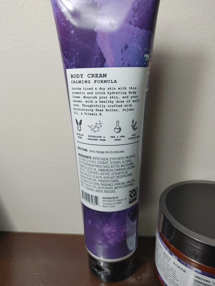 Size:RegularBody Area:Full BodyIngredients:Aloe Vera, Shea Butter, Jojoba Oil, Vitamin E, Lavender & ChamomileBrand:Five Deep BreathsFormulation:CreamColor:PurpleDepartment:UnisexType:Daily UseVolume:11.5 oz each (3)Period After Opening (PAO):12MFeatures:Animal Cruelty-Free, Contains Vitamins, Hydrating, Paraben-Free, Phthalate-FreeSet Includes:Daily Use, Day Treatment, Night TreatmentCountry/Region of Manufacture:ChinaProduct Line:Five Deep Breaths Body CareScent:Lavender & ChamomileMain Purpose:Moisturizer, Stress Reliefgtin13:811170039819Skin Type:All Skin TypesUPC:811170039819