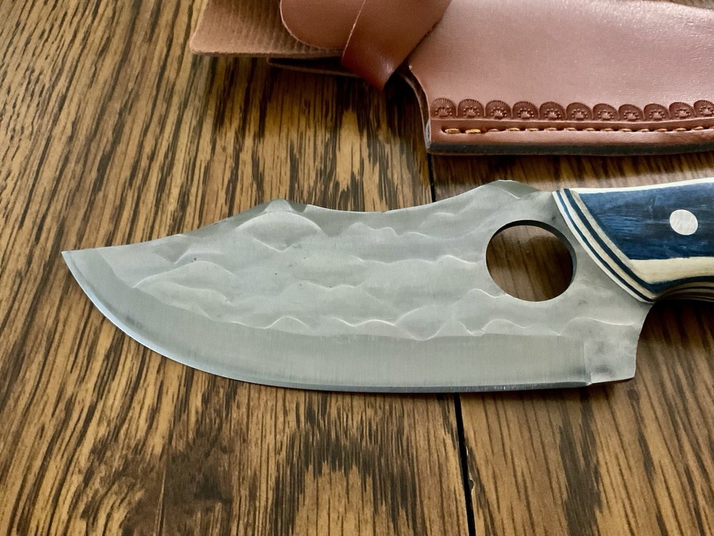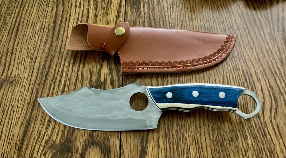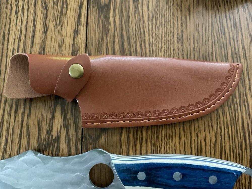 The product is a fixed blade knife with a stainless steel blade and a wood handle, designed for hunting purposes. It features a silver blade with a plain edge, full tang construction, and is suitable for ambidextrous use. The knife comes with a sheath for convenient carrying and storage. This original piece is perfect for outdoor enthusiasts and those who appreciate quality craftsmanship in their tools.this lot is sold as is no returns...thanks for looking