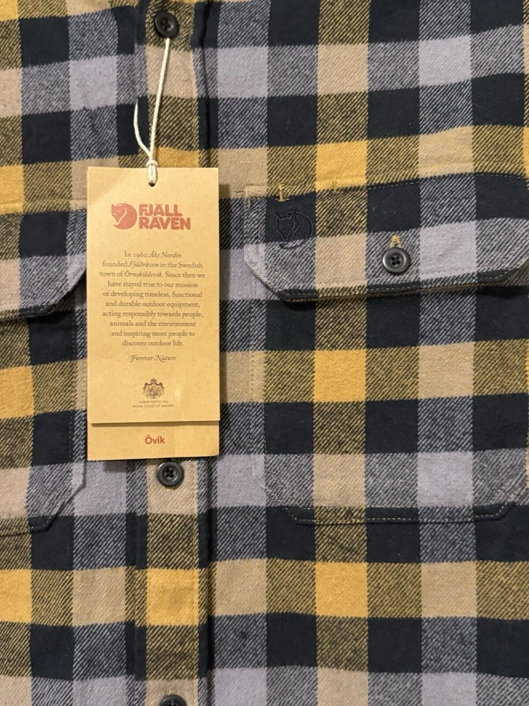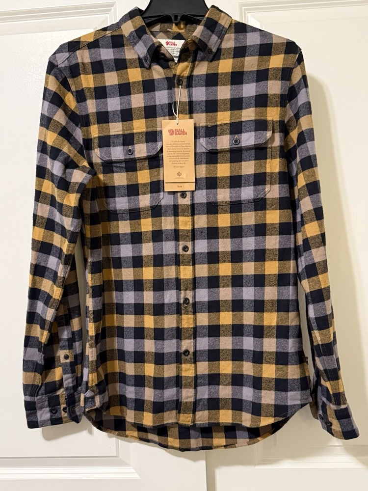 Upgrade your activewear with the Fjallraven Outdoor Clothing Skog Flannel Shirt in a stylish Buckwheat Brown/Black colorway. This shirt is perfect for outdoor activities like walking and hiking, with features like a slim fit, stretch material, and pockets for convenience. The button closure and long sleeves make it a comfortable and practical choice for any adventure. Crafted from high-quality flannel fabric and originally priced at $120, this shirt is a must-have for any outdoor enthusiast. The shirt is a size medium and is part of the Skog product line. Whether you're hitting the trails or running errands, the Fjallraven Outdoor Medium Skog Flannel Shirt Mens is the perfect addition to your wardrobe.