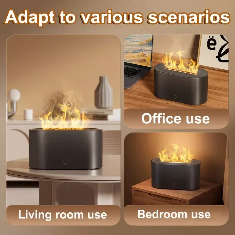 Aromatherapy and humidity for a more comfortable environment! The Simulated Flame Humidifier combines humidification and aromatherapy in a sleek, modern design. With a 7-color adjustable flame effect , it creates a cozy atmosphere while improving air quality. ✔ Aromatherapy Diffuser – Add essential oils for a relaxing environment. ✔ Efficient atomization – Maintains optimal humidity for better breathing comfort. ✔ Up to 1L capacity – Ideal for spaces of 10 to 20㎡. ✔ Easy to use – Button control and simple water refilling. ✔ USB-powered – Convenient connection anywhere. ✔ Safety assured – Water shortage protection for worry-free use. 🌿 Perfect for those seeking well-being and a more pleasant atmosphere! 🚚 FREE shipping across the U.S. and worldwide! Have any questions? DM us anytime! 💬