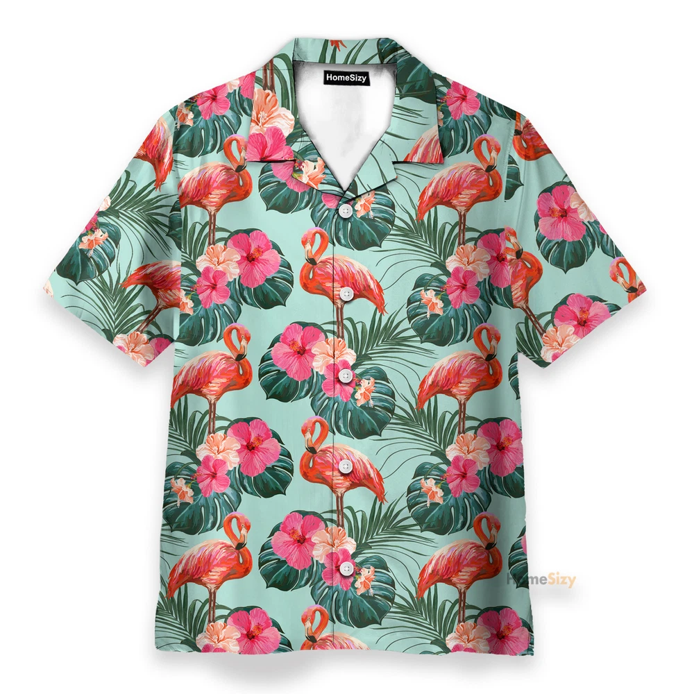 Flamingo Beautiful Floral Hawaiian Shirt Beach Shorts