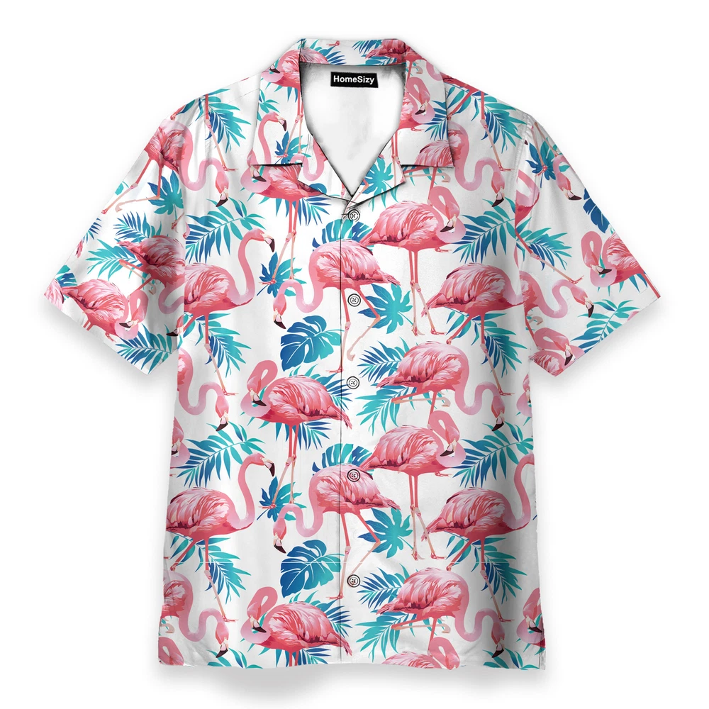 Flamingo Floral Tropical Leaves Pattern Hawaiian Shirt Beach Shorts