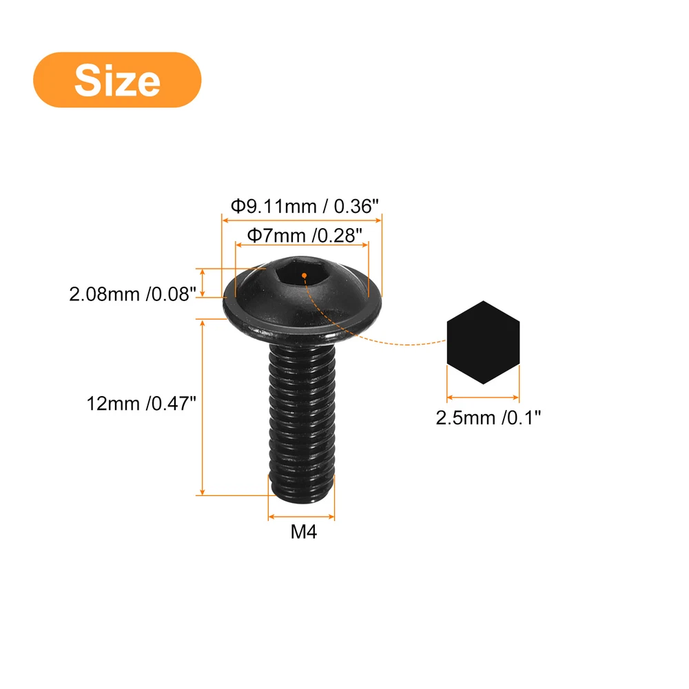 Document Description:1. Material: These flanged button head socket cap screws are made of 304 stainless steel material, which provides good corrosion resistance, strength, and durability. The black oxide enhances its corrosion resistance.2. Design: The flanged button head design offers a low profile and provides a larger bearing surface, ensuring a secure hold and distributing the load evenly. The flanged design helps to prevent over-tightening and provides a neat finish.3. Installation: To use these flanged button head socket cap screw, simply align the screw with the intended hole and fasten it using a hex key wrench.4. Application: These button head socket screws are suitable for various applications such as machinery, automotive, electronics, and furniture assembly. Their sturdy construction, corrosion resistance, and stylish black color make them good for both functional and aesthetic purposes.Specification:Material: 304 Stainless SteelFinish: Black OxideThread Size: M4x12mm / M4 x 0.47"(D*L)Pitch: 0.7mmInner Hex Diameter: 2.5mm / 0.1"Screw Head Size: 7 x 2.08mm / 0.28" x 0.08"(D*T)Flange Diameter: 9.11mm / 0.36"Package Content: 100pcs x Flanged Button Head Socket Cap Screws Flanged Button Head Socket Cap Screws, 100pcs M4x12mm 304 Stainless Steel Bolts Description: 1. Material: These flanged button head socket cap screws are made of 304 stainless steel material, which provides good corrosion resistance, strength, and durability. The black oxide enhances its corrosion resistance. 2. Design: The flanged button head design offers a low profile and provides a larger bearing surface, ensuring a secure hold and distributing the load evenly. The flanged design helps to prevent over-tightening and provides a neat finish. 3. Installation: To use these flanged button head socket cap screw, simply align the screw with the intended hole and fasten it using a hex key wrench. 4. Application: These button head socket screws are suitable for various applications such as machinery, automotive, electronics, and furniture assembly. Their sturdy construction, corrosion resistance, and stylish black color make them good for both functional and aesthetic purposes. Specification : Material: 304 Stainless Steel Finish: Black Oxide Thread Size: M4x12mm / M4 x 0.47"(D*L) Pitch: 0.7mm Inner Hex Diameter: 2.5mm / 0.1" Screw Head Size: 7 x 2.08mm / 0.28" x 0.08"(D*T) Flange Diameter: 9.11mm / 0.36" Package Content: 100pcs x Flanged Button Head Socket Cap Screws Hot Item Payment 1.We accept eBay payment . 2.Payment must be received within 7 business days of auction closing. Shipping 1.We ship to your eBay or Paypal address. Please make sure your eBay and Paypal address is correct before you pay. 2.Items will be shipped within 1-3 business day when we received payment. 3.Delivery time depends on destination and other factors. Description Policy Flanged Button Head Socket Cap Screws, 100pcs M4x12mm 304 Stainless Steel Bolts Description: 1. Material: These flanged button head socket cap screws are made of 304 stainless steel material, which provides good corrosion resistance, strength, and durability. The black oxide enhances its corrosion resistance. 2. Design: The flanged button head design offers a low profile and provides a larger bearing surface, ensuring a secure hold and distributing the load evenly. The flanged design helps to prevent over-tightening and provides a neat finish. 3. Installation: To use these flanged button head socket cap screw, simply align the screw with the intended hole and fasten it using a hex key wrench. 4. Application: These button head socket screws are suitable for various applications such as machinery, automotive, electronics, and furniture assembly. Their sturdy construction, corrosion resistance, and stylish black color make them good for both functional and aesthetic purposes. Specification : Material: 304 Stainless Steel Finish: Black Oxide Thread Size: M4x12mm / M4 x 0.47"(D*L) Pitch: 0.7mm Inner Hex Diameter: 2.5mm / 0.1" Screw Head Size: 7 x 2.08mm / 0.28" x 0.08"(D*T) Flange Diameter: 9.11mm / 0.36" Package Content: 100pcs x Flanged Button Head Socket Cap Screws Hot Item Payment 1.We accept eBay payment . 2.Payment must be received within 7 business days of auction closing. Shipping 1.We ship to your eBay or Paypal address. Please make sure your eBay and Paypal address is correct before you pay. 2.Items will be shipped within 1-3 business day when we received payment. 3.Delivery time depends on destination and other factors.