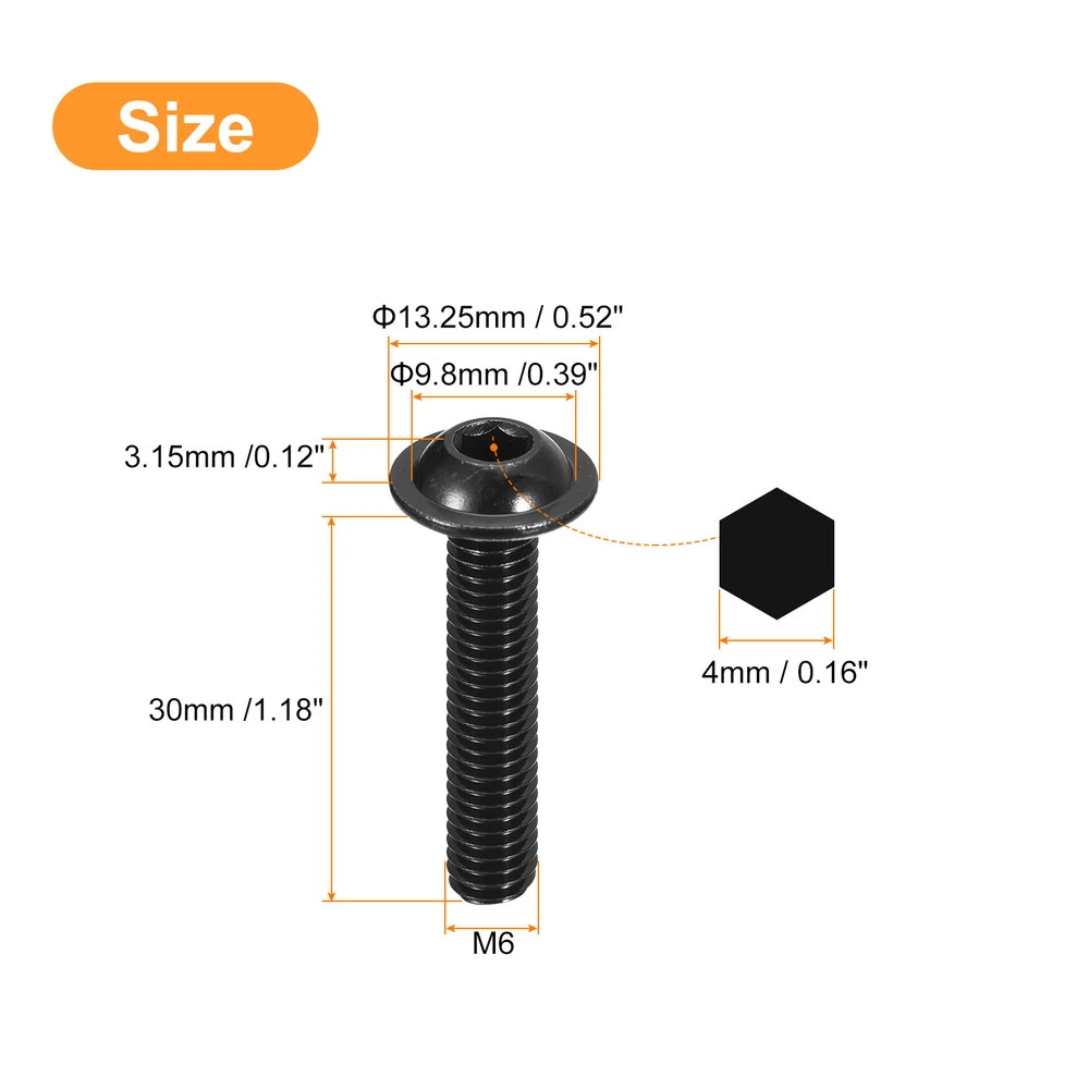 Document Description:1. Material: These flanged button head socket cap screws are made of 304 stainless steel material, which provides good corrosion resistance, strength, and durability. The black oxide enhances its corrosion resistance.2. Design: The flanged button head design offers a low profile and provides a larger bearing surface, ensuring a secure hold and distributing the load evenly. The flanged design helps to prevent over-tightening and provides a neat finish.3. Installation: To use these flanged button head socket cap screw, simply align the screw with the intended hole and fasten it using a hex key wrench.4. Application: These button head socket screws are suitable for various applications such as machinery, automotive, electronics, and furniture assembly. Their sturdy construction, corrosion resistance, and stylish black color make them good for both functional and aesthetic purposes.Specification:Material: 304 Stainless SteelFinish: Black OxideThread Size: M6x30mm / M6 x 1.18"(D*L)Pitch: 1mmInner Hex Diameter: 4mm / 0.16"Screw Head Size: 9.8 x 3.15mm / 0.39" x 0.12"(D*T)Flange Diameter: 13.25mm / 0.52"Package Content: 25pcs x Flanged Button Head Socket Cap Screws Flanged Button Head Socket Cap Screws, 25pcs M6x30mm 304 Stainless Steel Bolts Description: 1. Material: These flanged button head socket cap screws are made of 304 stainless steel material, which provides good corrosion resistance, strength, and durability. The black oxide enhances its corrosion resistance. 2. Design: The flanged button head design offers a low profile and provides a larger bearing surface, ensuring a secure hold and distributing the load evenly. The flanged design helps to prevent over-tightening and provides a neat finish. 3. Installation: To use these flanged button head socket cap screw, simply align the screw with the intended hole and fasten it using a hex key wrench. 4. Application: These button head socket screws are suitable for various applications such as machinery, automotive, electronics, and furniture assembly. Their sturdy construction, corrosion resistance, and stylish black color make them good for both functional and aesthetic purposes. Specification : Material: 304 Stainless Steel Finish: Black Oxide Thread Size: M6x30mm / M6 x 1.18"(D*L) Pitch: 1mm Inner Hex Diameter: 4mm / 0.16" Screw Head Size: 9.8 x 3.15mm / 0.39" x 0.12"(D*T) Flange Diameter: 13.25mm / 0.52" Package Content: 25pcs x Flanged Button Head Socket Cap Screws Hot Item Payment 1.We accept eBay payment . 2.Payment must be received within 7 business days of auction closing. Shipping 1.We ship to your eBay or Paypal address. Please make sure your eBay and Paypal address is correct before you pay. 2.Items will be shipped within 1-3 business day when we received payment. 3.Delivery time depends on destination and other factors. Description Policy Flanged Button Head Socket Cap Screws, 25pcs M6x30mm 304 Stainless Steel Bolts Description: 1. Material: These flanged button head socket cap screws are made of 304 stainless steel material, which provides good corrosion resistance, strength, and durability. The black oxide enhances its corrosion resistance. 2. Design: The flanged button head design offers a low profile and provides a larger bearing surface, ensuring a secure hold and distributing the load evenly. The flanged design helps to prevent over-tightening and provides a neat finish. 3. Installation: To use these flanged button head socket cap screw, simply align the screw with the intended hole and fasten it using a hex key wrench. 4. Application: These button head socket screws are suitable for various applications such as machinery, automotive, electronics, and furniture assembly. Their sturdy construction, corrosion resistance, and stylish black color make them good for both functional and aesthetic purposes. Specification : Material: 304 Stainless Steel Finish: Black Oxide Thread Size: M6x30mm / M6 x 1.18"(D*L) Pitch: 1mm Inner Hex Diameter: 4mm / 0.16" Screw Head Size: 9.8 x 3.15mm / 0.39" x 0.12"(D*T) Flange Diameter: 13.25mm / 0.52" Package Content: 25pcs x Flanged Button Head Socket Cap Screws Hot Item Payment 1.We accept eBay payment . 2.Payment must be received within 7 business days of auction closing. Shipping 1.We ship to your eBay or Paypal address. Please make sure your eBay and Paypal address is correct before you pay. 2.Items will be shipped within 1-3 business day when we received payment. 3.Delivery time depends on destination and other factors.
