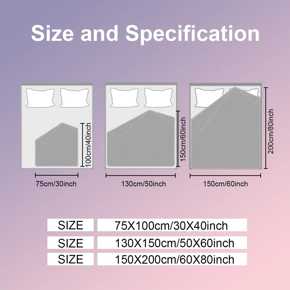 Material Cloth Product Attributes Ordinary Package Size 270*200*30(1mm); 406*346*52(1mm); 420*320*40(1mm) SIZE: 30"x40",50"x60", 60"x80",big enough for one person as a throw, covers feet up to shoulder level. MATERIAL: Its reversible feature allows it to be used from both sides-one ultra soft white polyester sherpa lining and the other, printed flannel fleece. COMFY WARM: Sherpa side is so fluffy and instantly warm to the touch, and colored side is super smooth and cool to the touch. Held up perfectly in the washing machine. HEMMED EDGES: Product is sewn around the edges, making it strong and lasting longer. This blanket will be a perfect addition to your home, but also makes a great gift for your loved ones! MUTIFUNCTION: Suitable for the couch, daybeds, nursery or porch sitting, toddler beds or as a nursery blanket.