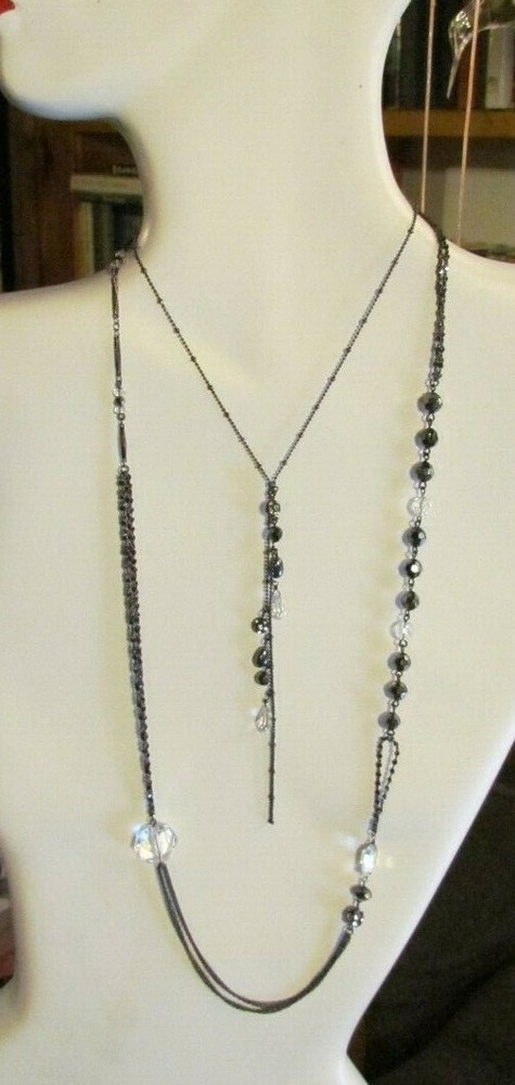 Flapper Style Necklace Black Bead Multi Chain DISCO BALL Hippie Dangle Necklace