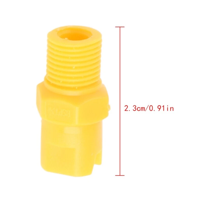 Features: Integral fan nozzle is characterized by producing high impact liquid column or a fan-shaped of 0° to 110° The nozzle produce a of liquid uniform distribution, size of small to When in need of a plurality of nozzles, it can produce overlapping It has the characteristics of tapering so that the has coverage area distribution Specification: Angles: 65 degree Connection: 1 8 1 4 Applications: cooling, disinfection, removal... Quantity: 1PC Note: 1.Transition: 1cm=10mm=0.39inch 2.Please allow 0-3cm error due to manual measurement. pls make sure you do not mind before you bid. 3.Due to the difference between different monitors, the picture may not reflect the actual color of the item. Thank you! Package includes: 1 x Nozzle