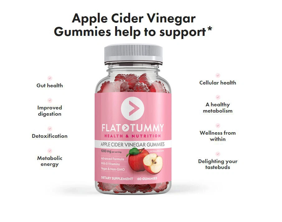 Flat Tummy Apple Cider Vinegar Gummies for Weight Loss & Digestive 60 Count
