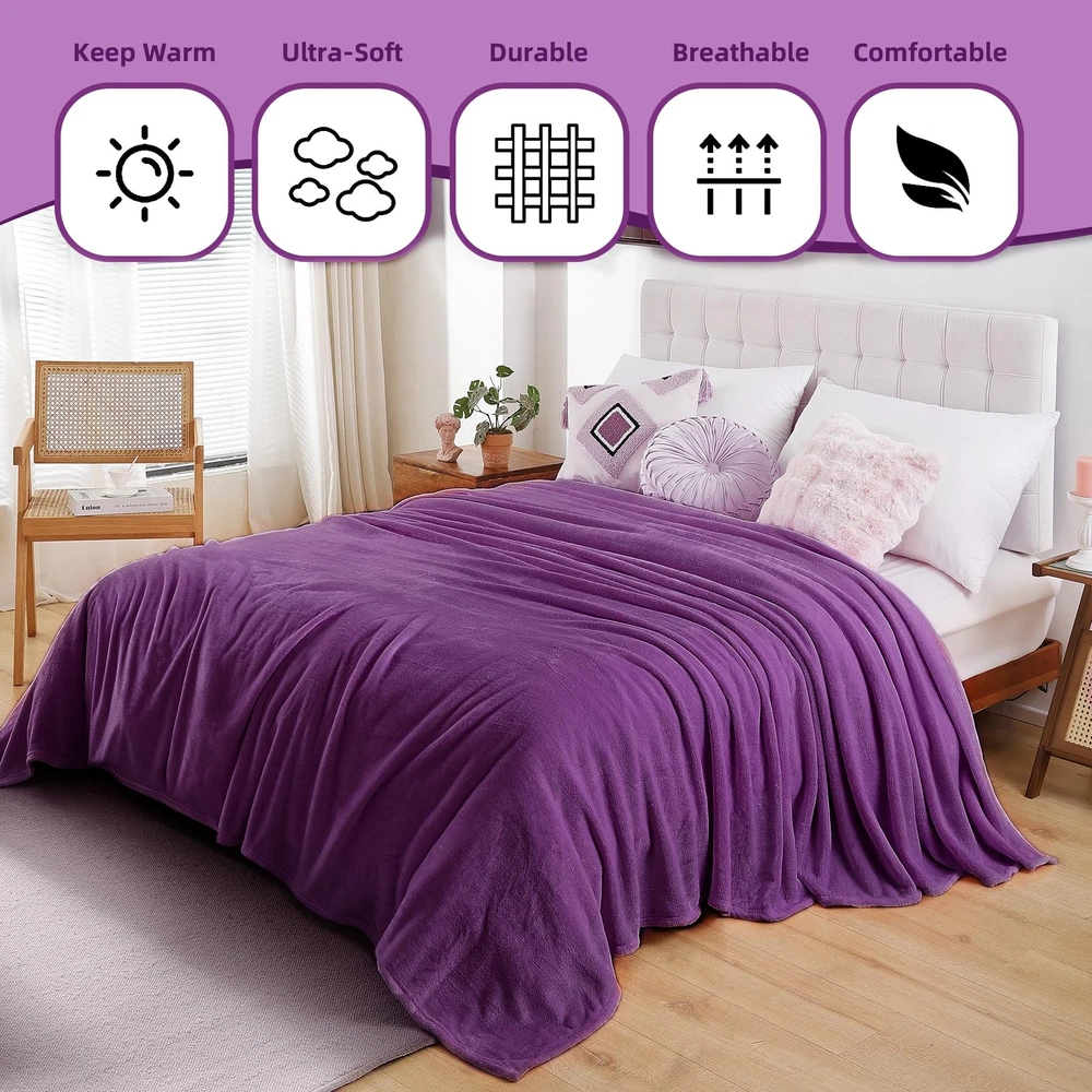 Soft & Durable: Our flannel throw blanket is made of 100% polyester microfiber, ensuring a soft and cozy feel. king size blanket is fluffy, anti-pilling, durable, and lightweight, making king blankets for the bed perfect for all seasons. The double-sided design offers different senses of softness to improve your sleep. King Size Fleece Blanket Diversity: This fuzzy blanket comes in 10 colors and 4 sizes, offering a wide range of options for our customers. Whether you need a throw blanket (50" x 60"), twin blanket (66" x 90"), queen blanket (90" x 90"), or king blanket (90" x 102"), we have the perfect size for everyone. Moving and packing blankets are great for men and women, adults and children, and even friends and pets. Multi-Scenario: King size soft blanket is versatile and suitable for various scenarios.King size lightweight blanketwill keep you comfortable while taking a nap in the office or bed.You can also lie on the sofa and watch TV during those cold winter days.Additionally, it is lightweight and practical, making it a perfect travel companion for business trips.Outdoor enthusiasts can use it in RVs and tents, while it can also serve as a summer air conditioning blanket or a children's crawling blanket. Best Gift: King fuzzy blanket is the perfect gift for various occasions, such as birthdays, Valentine's Day, Mother's Day, Father's Day, Christmas, and more. King size microfiber blanket brings warmth and comfort to your friends and loved ones, allowing you to create cherished moments together. Easy to Care: This blanket is easy to care for and maintain. Simply wash it separately in cold water and machine washable. To maintain its quality, avoid using a powerful washing machine and tumble dry gently. This fleece blanket is wrinkle and shrink resistant, ensuring its durability even after long-term use and multiple washes. Worry-free shopping:is a shop that specializes in blankets, we offer a 60-day money back guarantee for the knitted throw blanket.We want our customers to be satisfied with our products and services.Have any questions, contact us first, we will try our best to provide you with customer service satisfaction!