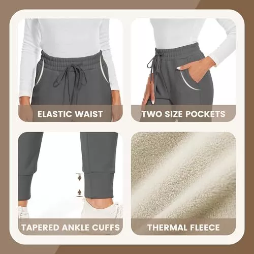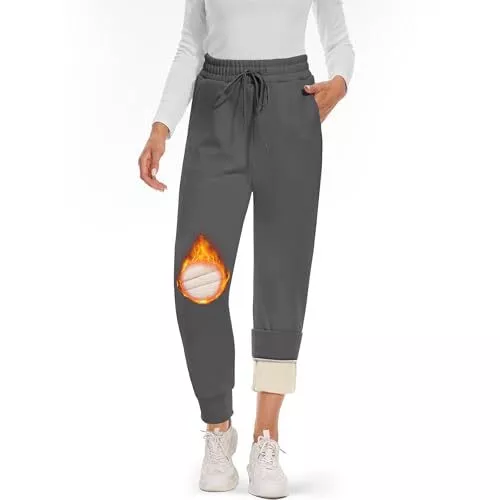 Fleece Lined Sweatpants Women - Joggers for Women with Medium Dark Grey