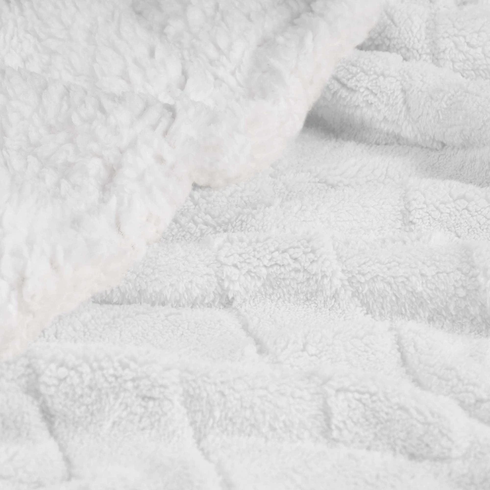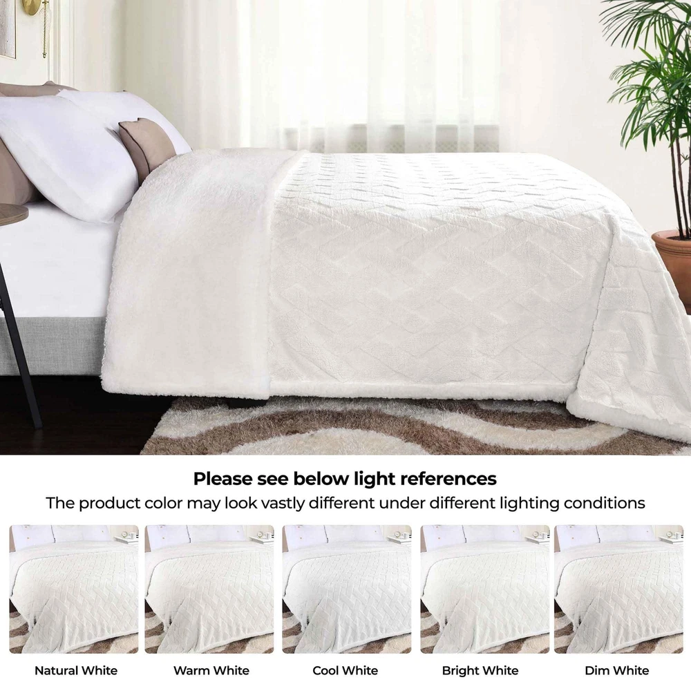 Feel the warmth of a welcoming hug with the Nuuk Fleece Blanket. Crafted from 100% Polyester, this blanket is incredibly soft and cozy, allowing you to wrap yourself in luxurious comfort. The jacquard lattice pattern adds a touch of elegance to any living space, while the reverse sherpa is sure to add a sumptuous layer of warmth and coziness. Available in your choice of gorgeous colors and versatile sizes, this blanket will surely enhance your living room as a sofa throw or your bedroom as an added layer while you rest. DURABLE AND LONG-LASTING: This soft blanket is made from made from Polyester fibers that are soft to the touch and perfect for cozying up; this blanket is long-lasting and durable; perfectly pair with any home decor styles MODERN DESIGN: This reversible blanket features a jacquard lattice design on side and solid sherpa on the reverse in your color choice of Gold, Green, Light Blue, White, Ivory, Cream, Poppy Red, Platinum (Silver/Grey), Navy Blue, Black, or Orange Rust ALL-SEASON COMFORT: This medium weight blanket is breathable and ultra-soft with a smooth texture, so you can enjoy it all year round; Ideal as a sofa or couch throw in the living room, or as an added layer in the bedroom EFFORTLESS CARE: For the most luxurious results, machine wash and tumble dry low; Always care label instructions for best results DESIGNER FINISH: This throw blanket is elegantly-finished with self-bound edges for a clean look and durability, making a great gift for housewarmings, engagements, bridal showers, holidays, vacations, dorm rooms, and more