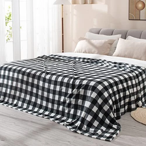 260GSM FLANNEL FLEECE: The flannel fabric we choose is originally made from 100% polyester and brushed to create super softness on both sides, the throw is designed to be buffalo plaid blanket which is elegant. VERSATILE USAGES: Reversible design offers extreme softness. Classical decorative Christmas plaid and checkered patterns endow this throw blanket with elegance. An excellent choice to be a decoration to dress up your warm home while protecting your luxury bed and couch from dirt and stain. Also can be regarded as a gift for family and friends to add the warmth for your care. ALL SEASONS SUITABLE: Fleece Blanket for couch or bed is perfect for decorating the home - The fabulous color revives this fall blanket with an elegant appearance to complement your room with a chic feeling. Timeless and classical checkered patterns add a unique atmosphere to Halloween and Christmas. SUPER SOFT FUZZY BLANKET: The blanket is designed with a plush thickness that keeps you extremely warm wherever you are. The Lightweight blanket with a timeless and luxury buffalo plaid pattern, makes it easy and convenient to carry and store outdoor for camping and travel. EASY CARE: It is machine washable and dryable for easy care. No shrinkage, No color fading, and No unraveling after washing.