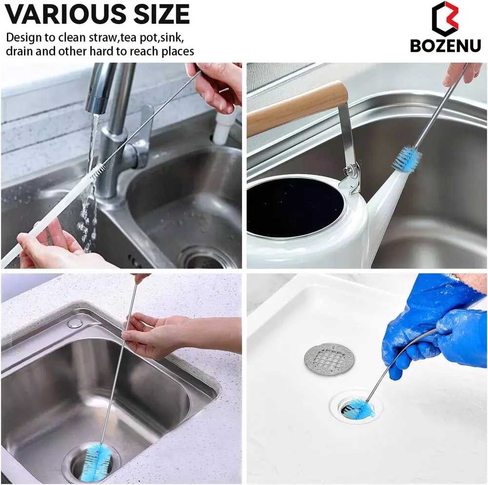 Store New Arrivals Add to Favorite View Feedback Contact Flexible Drain Brush, 66 Inch Long Double Ended Hose Pipe and 58 Inch Tube Description Item model number DB-116 Unit Count 4.0 Count Product Dimensions 66"L x 1.2"W x 1.2"H Number of Items 4 Color Blue Brand Bozenu Material Stainless Steel Country of Origin China Handle Material Stainless Steel Item Weight 1.76 ounces Shape Round Surface Recommendation Floor, Tile, Plastic, Stone Included Components Handle Special Feature Long Handle, Portable, Reusable, Bagged, Hanging Loop Specific Uses For Product Bottle Manufacturer Bozenu You will get 1 pcs 66" dual-ended drain brush with 0.6" and 1.2" diameter bristle heads, 1 pcs 58" pipe brush with 0.5" diameter bristle head, 2 pcs 8" straw cleaner brush with 0.4" diameter bristle head. These premium drain brushes are made of the strongest material which is food grade. It's durable and will not rust. The bristles are made of nylon which is both resistant and easy to clean. Get around any surface or maneuver any depth. Simply insert it into the area to be cleaned, swirl and wash. With the long, soft but durable nylon bristles, it can be used to clean each size of pipe you have and will not damage the inside of tube. Flexible drain brush works great at cleaning around the stopper and will reach the u bend with no problems Works great at cleaning around the hard-to-reach narrow pipes or tubes. Perfect cleaning tools, ideal for all aquarium filter, fish tank, feeding tube, refrigerator drain, lily pipe, shower sink drain cleaning, hummingbird feeder. Product Description ABOUT US We offer the best prices around on high quality products. Our E-store includes media such as books, movies, music and games while offering electronics, toys, sporting apparel, clothing, tools, general home, garden items and more. SHIPPING We are always working hard to ensure your package arrives as soon as possible. Please understand that some factors like weather, high postal traffic, and the performance of shipping companies are outside of our control. We offer free shipping to the lower 48 states and ship within 5 business days of payment, usually sooner. We do not accept P.O. Boxes. Please provide a physical address. RETURNS We offer a 30-Day Return Policy on items which you are not completely satisfied with. You have the option for a full-refund or an exchange of the item. No returns are available on items shipped outside of the USA. PAYMENT We accept PayPal. CONTACT US This page content is yet to come Please ad us to your favorite seller and visit again later Thank You CUSTOMER SATISFACTION We try our very best to make sure every customer is completely satisfied. If there's a problem, message us! We're happy to help.
