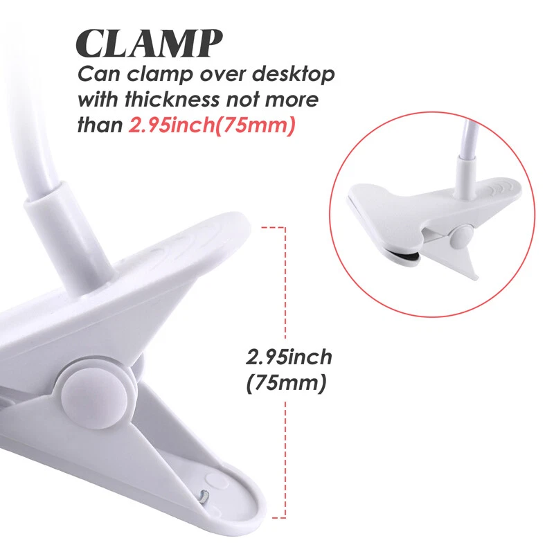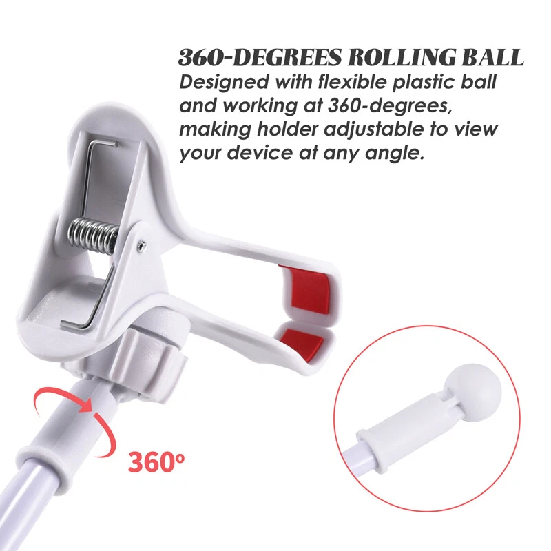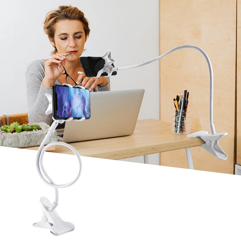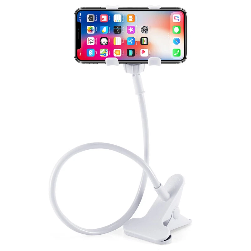 Flexible Lazy Bracket Mobile Phone Stand Holder Car Bed Desk For iPhone Samsung Description The universal smartphone desk grip mount fits for most mobile phones. It has four clamps that sink in to grab your device for a strong stable hold. Attractive rubber pieces carefully hug your smartphone's body safely. A flexible long wire can be adjusted to any comfortable viewing angle or distance you desire. Mount to side of a table, desk, door, etc. via a sturdy metal spring clamp. Features: Lazy Bed Desktop Car Mount Phone Holder. Universal holder for Mobile Phone, MP3, Digital Camera, GPS, cameras etc. Watch movies / videos, Listen music on the bed without holding your phone! Flexible arm for different angle and distance. Specification: Material: Plastic + metal Length: 66cm (Approx) Flexible Arm length: Max. 600-660 mm/23.6”-25.9” Clamp for Phone: <125mm/4.92"(Width of the device) Clamp for Bed(Table): <75mm/2.95"(Thickness of the bed or table) Color: White Package Included: 1x Lazy Bed Desktop Car Mount Phone Holder