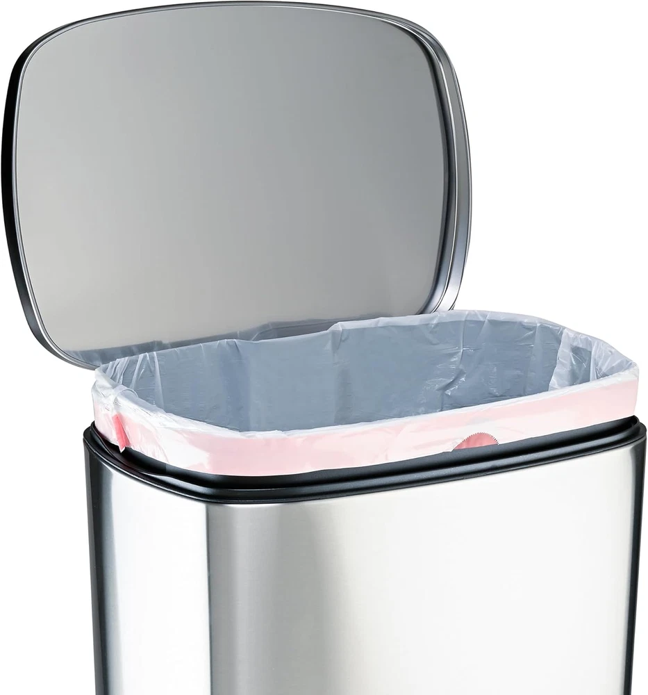 Tall kitchen trash bags in Unscented (50-count), each with a 13 gallon capacity Tear-resistant white plastic material with reliable Flextra strength. Flextra technology embosses the trash bag with a flex pattern, to better control the stretch of the bag to assist in minimizing tears and punctures Red drawstring closure for easy tying and carrying Alexa voice shopping enabled: to place your next order, just say, “Alexa, reorder Amazon Basics Tall Kitchen Drawstring Bags" Product Description Amazon Basics Flextra Tall Kitchen Drawstring Trash Bags, White trash bag with red drawstring closure for easy tying and carrying Flex-tra strength From the Manufacturer Amazon Basics